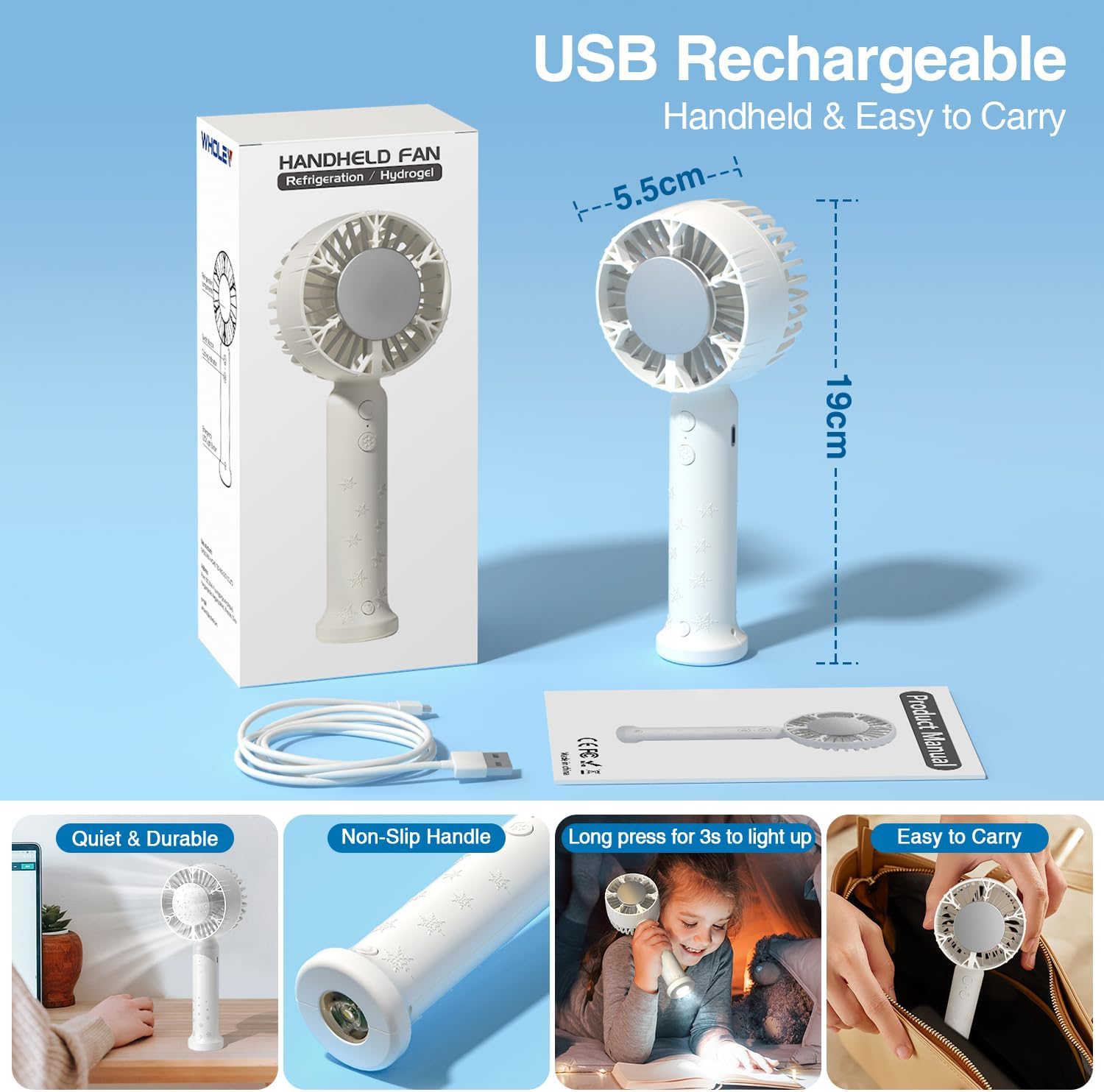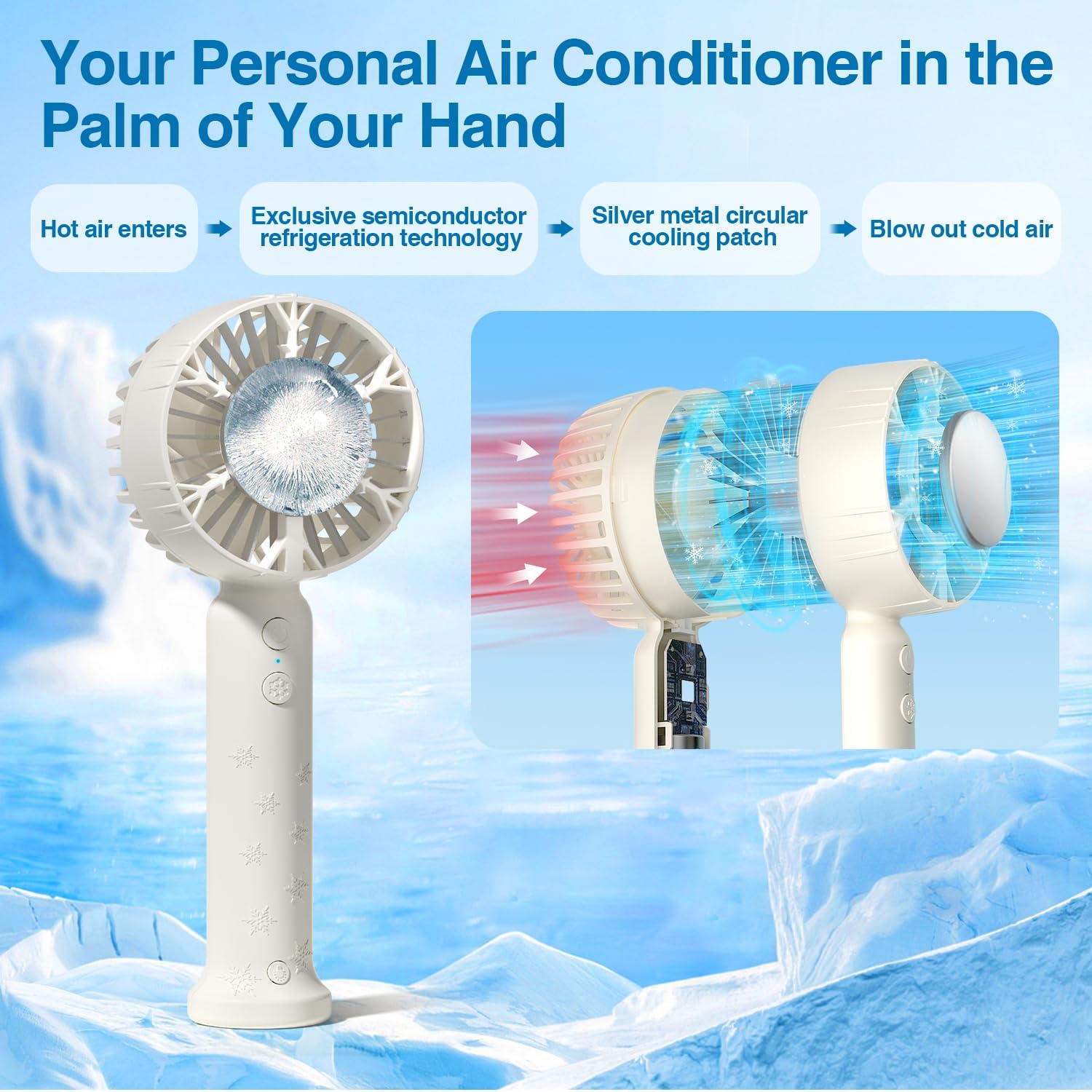 Handheld Cooling Fan, Handheld Fan Mini Air Conditioner Refrigeration Fan, Ice Cooling Mode With 3 Speed Wind, Usb Rechargeable