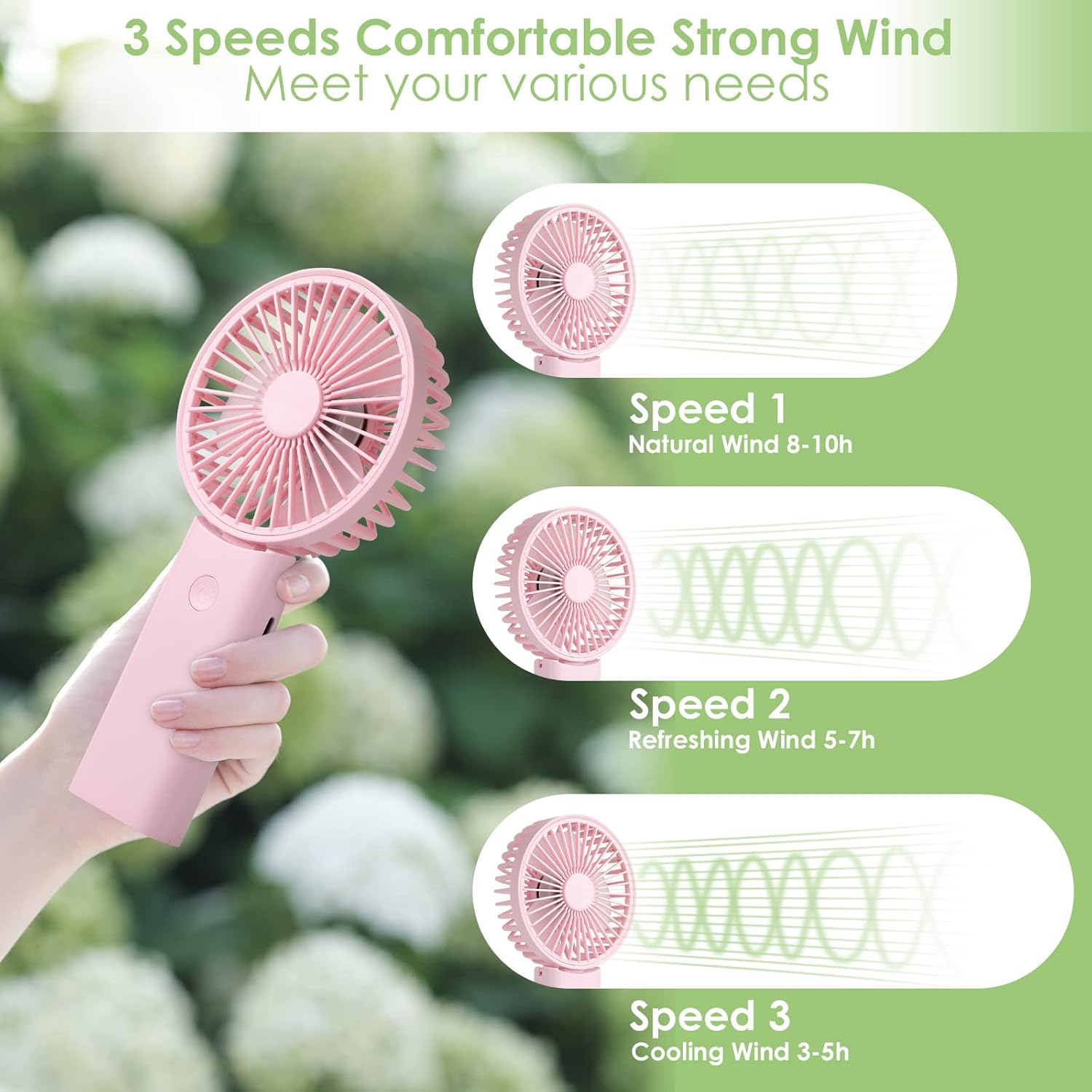 Handheld Fan, 3 In 1 Portable Fan,90°Foldable Desk Fan, Neck Fan, Hand Fan, 3 Adjustable Speeds Usb Rechargeable Personal Pocket