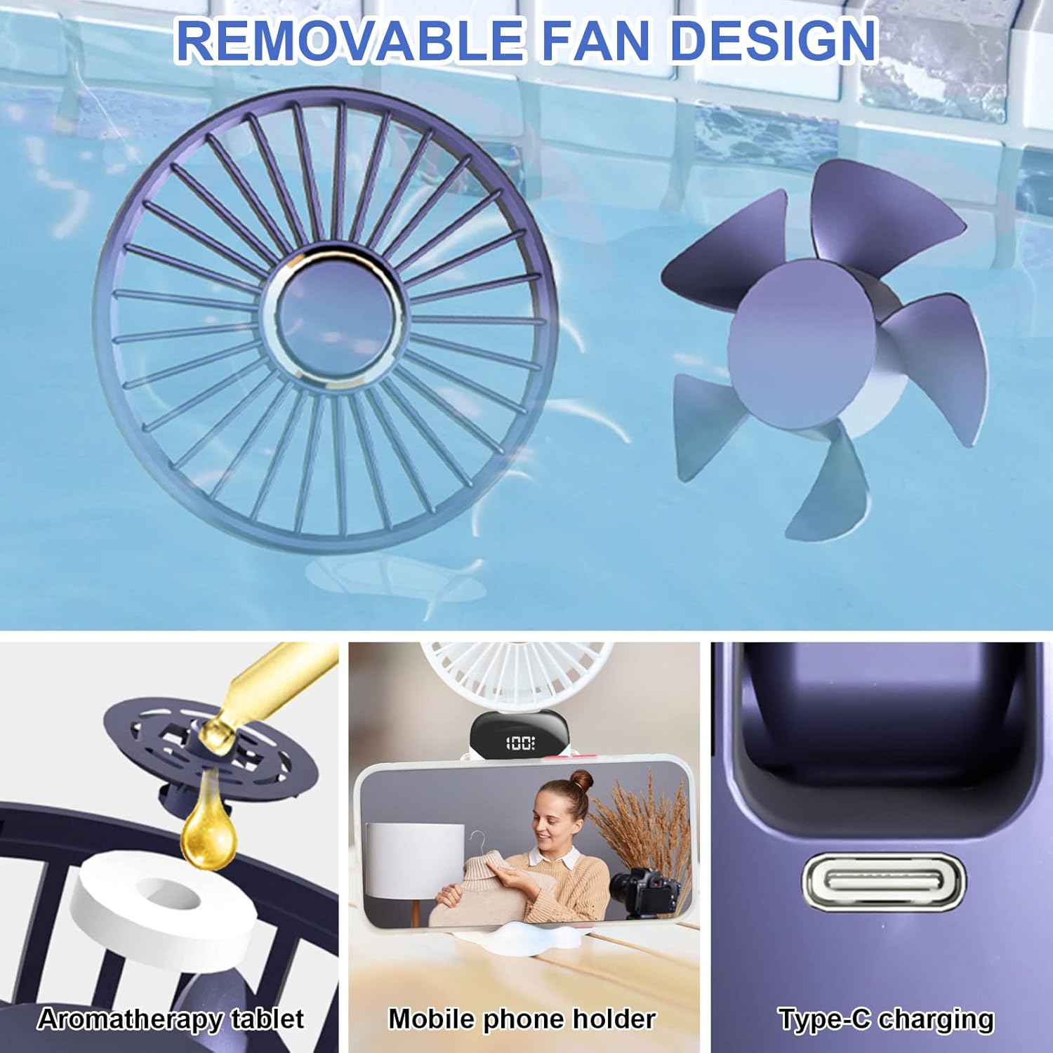 Handheld Fan, Led Power Gear Display Portable Lanyard Fan, 5 Wind Speed Adj Personal Small Desk Fan With Base, Lightweight Makeup