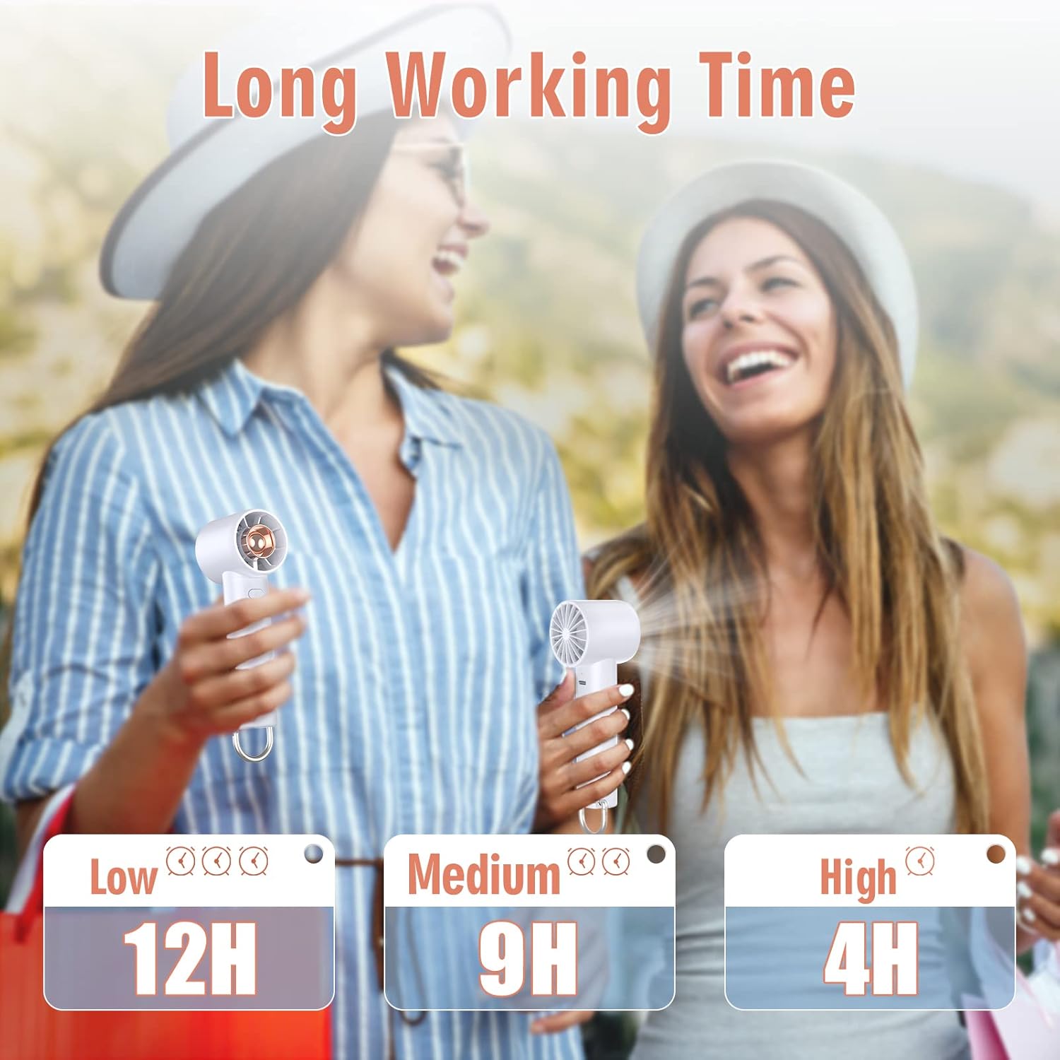 • 【Long Working Time Rechargeable】: Enjoy up to 12 hours of running time with the 2600mah rechargeable battery. A long using time so you can enjoy this handheld fan outdoor for whole day. Battery/ USB powered. When you are away from the USB interface, you can use battery power to meet your various scene needs. The turbo fan comes with a USB cable, you can charge it through a power outlet, power bank, computer or any other device with a USB port.