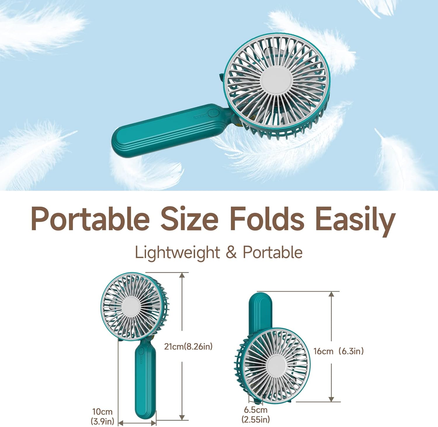 Handheld Fan, Mini Portable Foldable Fan, Pocket Battery Rechargeable Hand Fan, For Travelling And Eyelash Fan 2000AhCyan