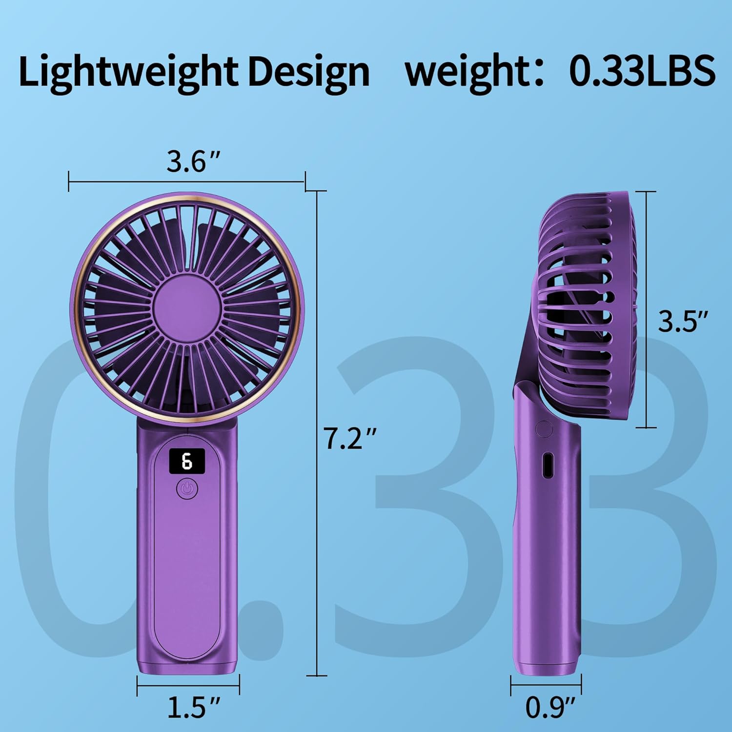 Handheld Fan, Portable Fan, 4000Mah Usb Rechargeable Personal Fan, 180° Foldable Mini Desk Fan, 6 Wind Speed, Lcd Digital Display