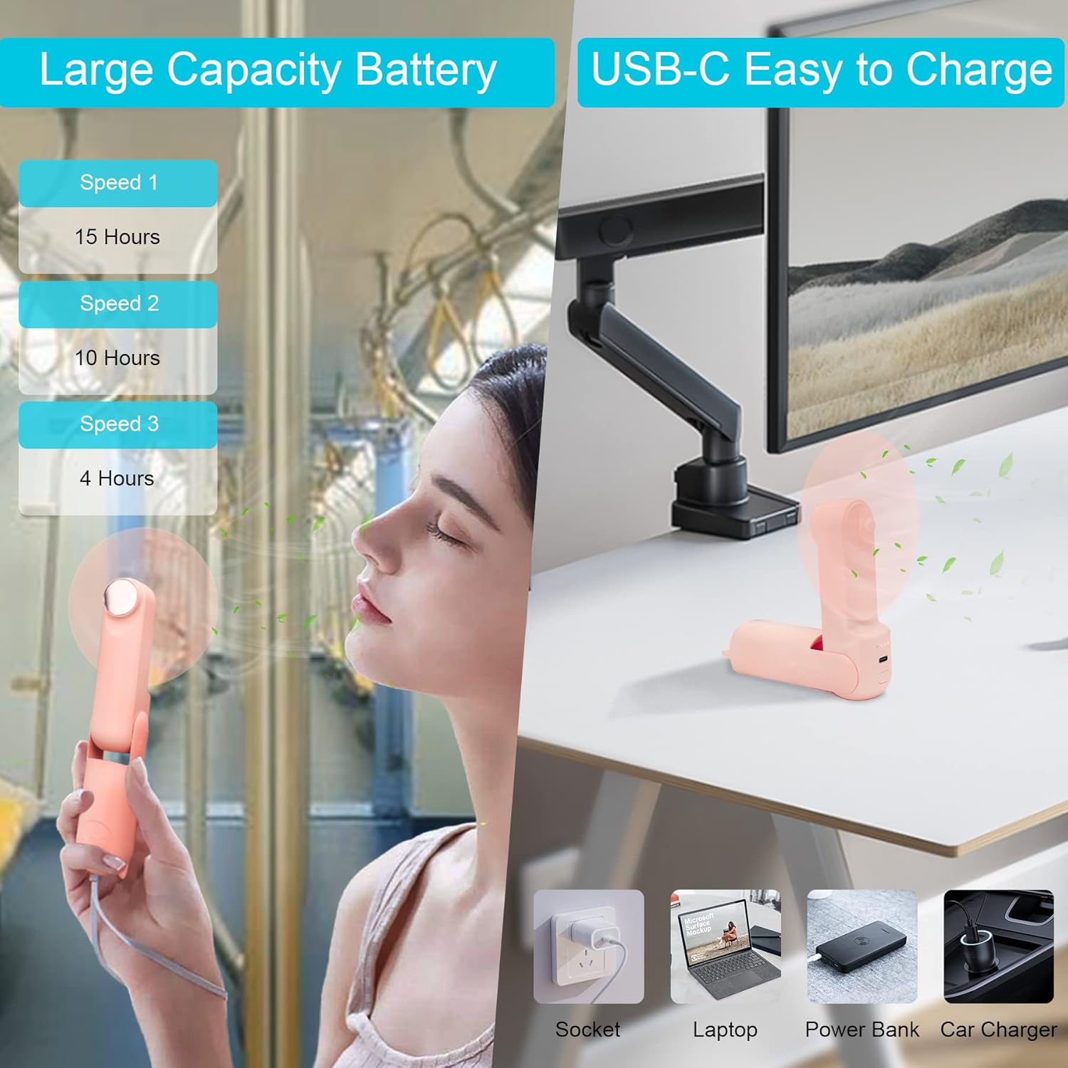 Handheld Mini Fan And Portable Neck Fan, Portable Usb Rechargeable Small Pocket Fan, Wearable Personal Fan,Battery Operated Fan