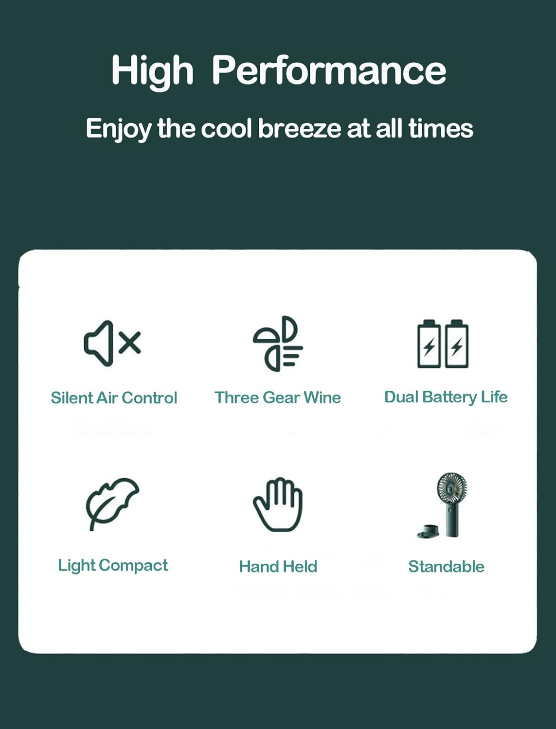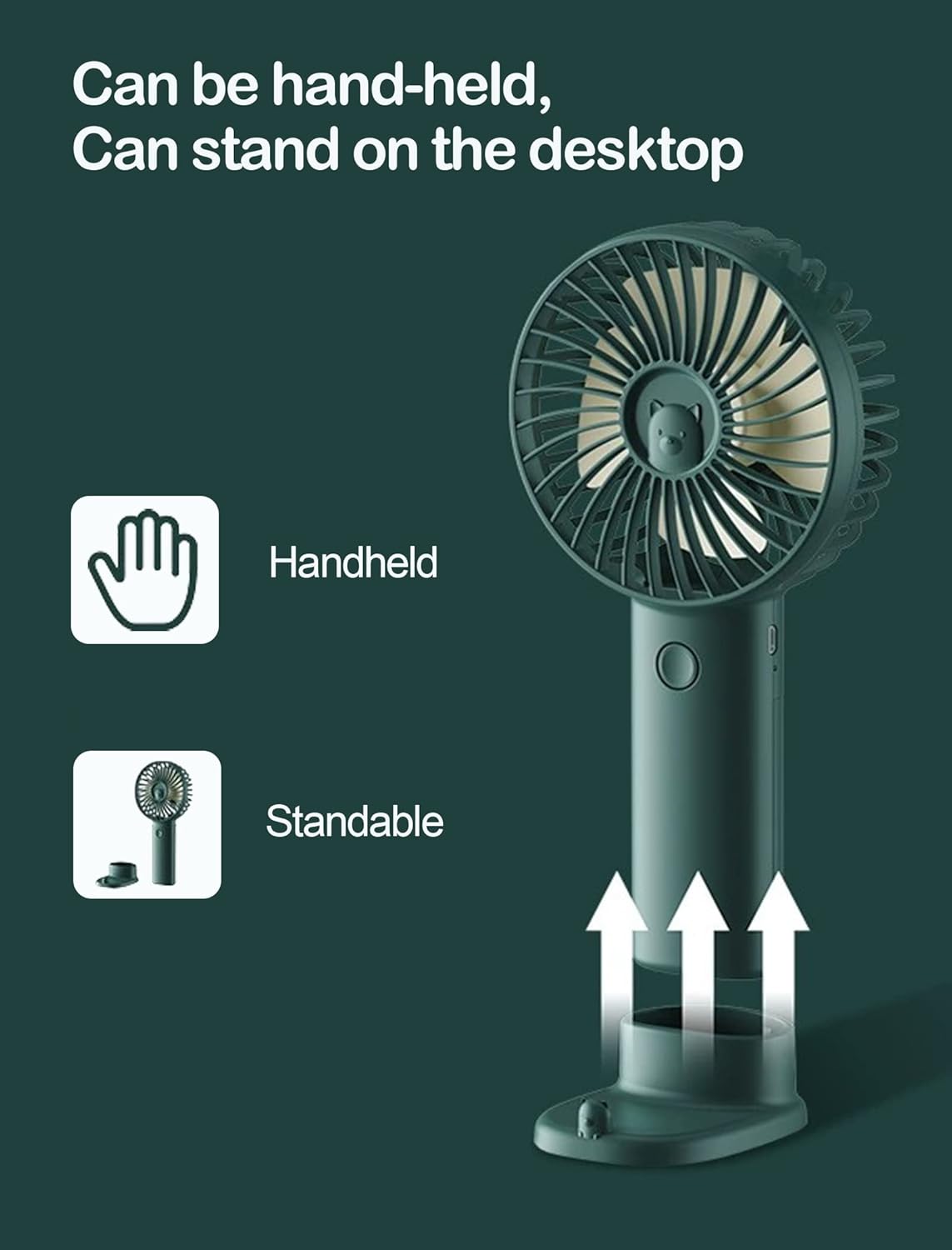 Handheld Mini Fan, Portable Usb Rechargeable 3 Speeds Personal Small Desk Table Fan With Base, 822 Working Hours For Travel/Commu