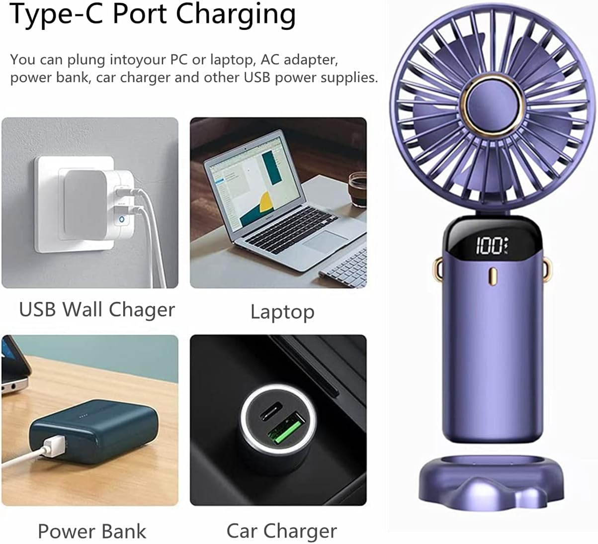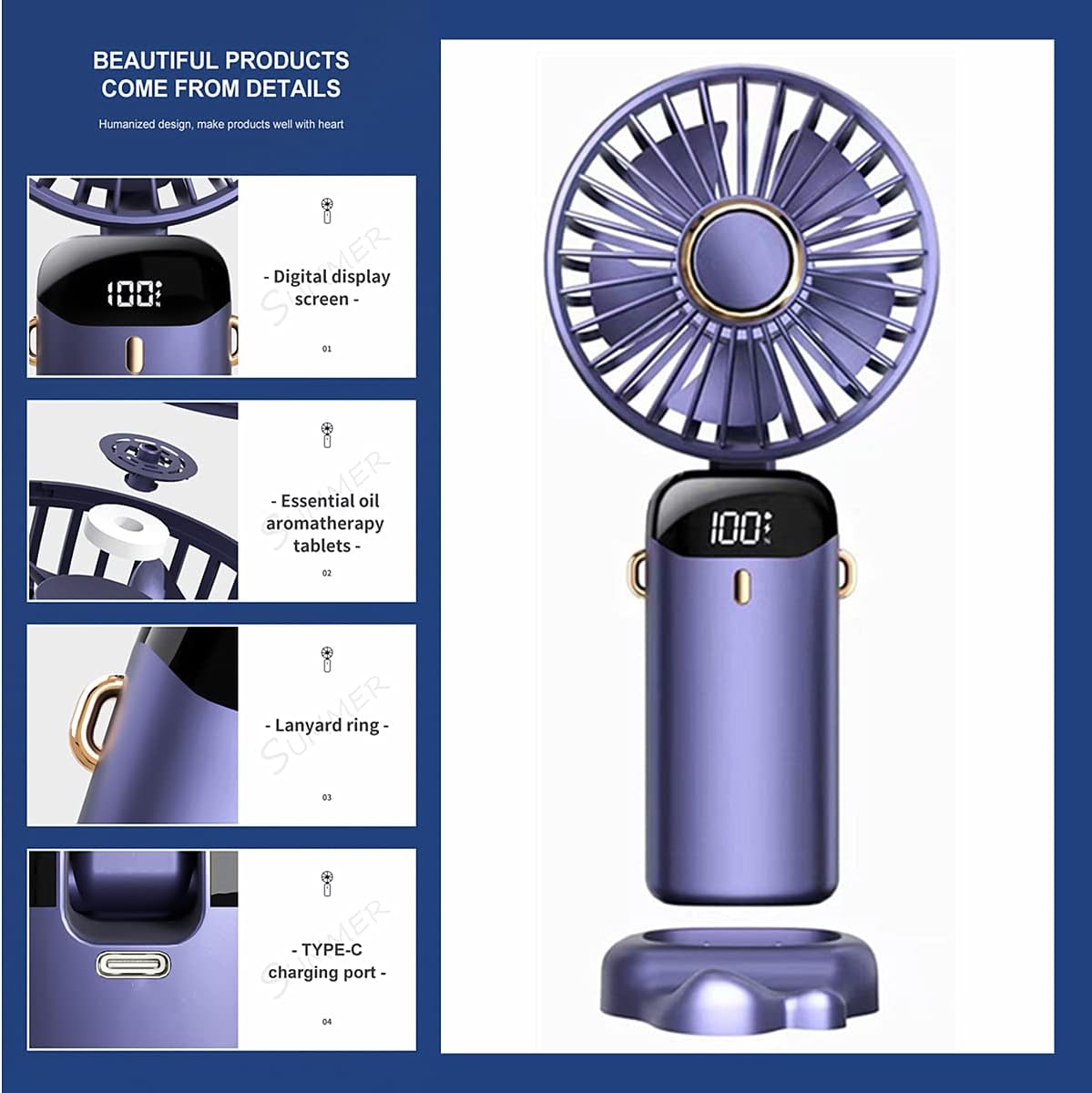 Handheld Portable Fan,Mini Personal Foldable Hand Fan,4000Mah Battery Operated,Usb Rechargeable,5 Adjustable Speeds Desk Table