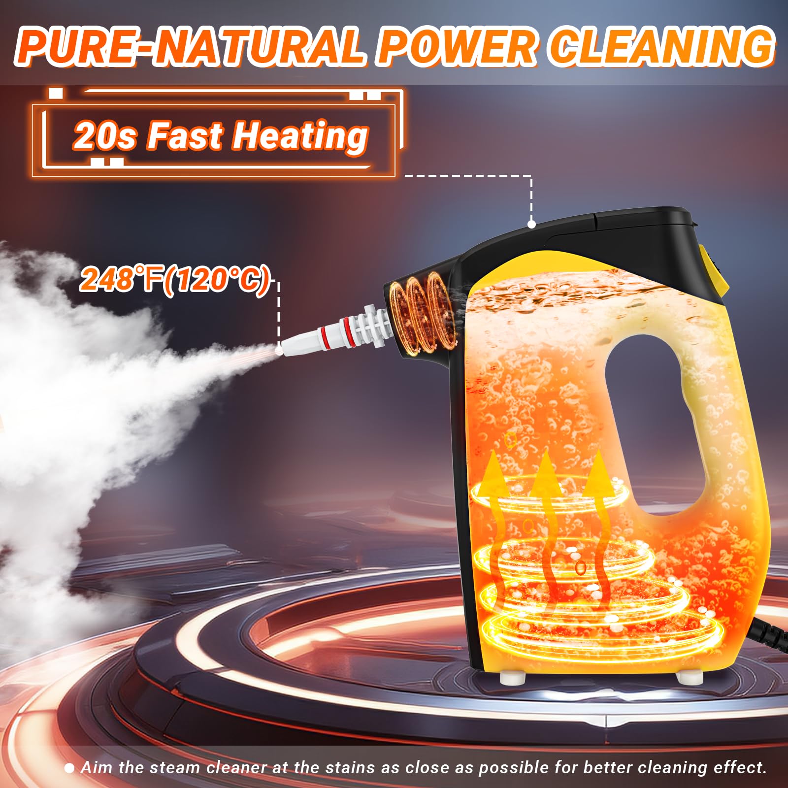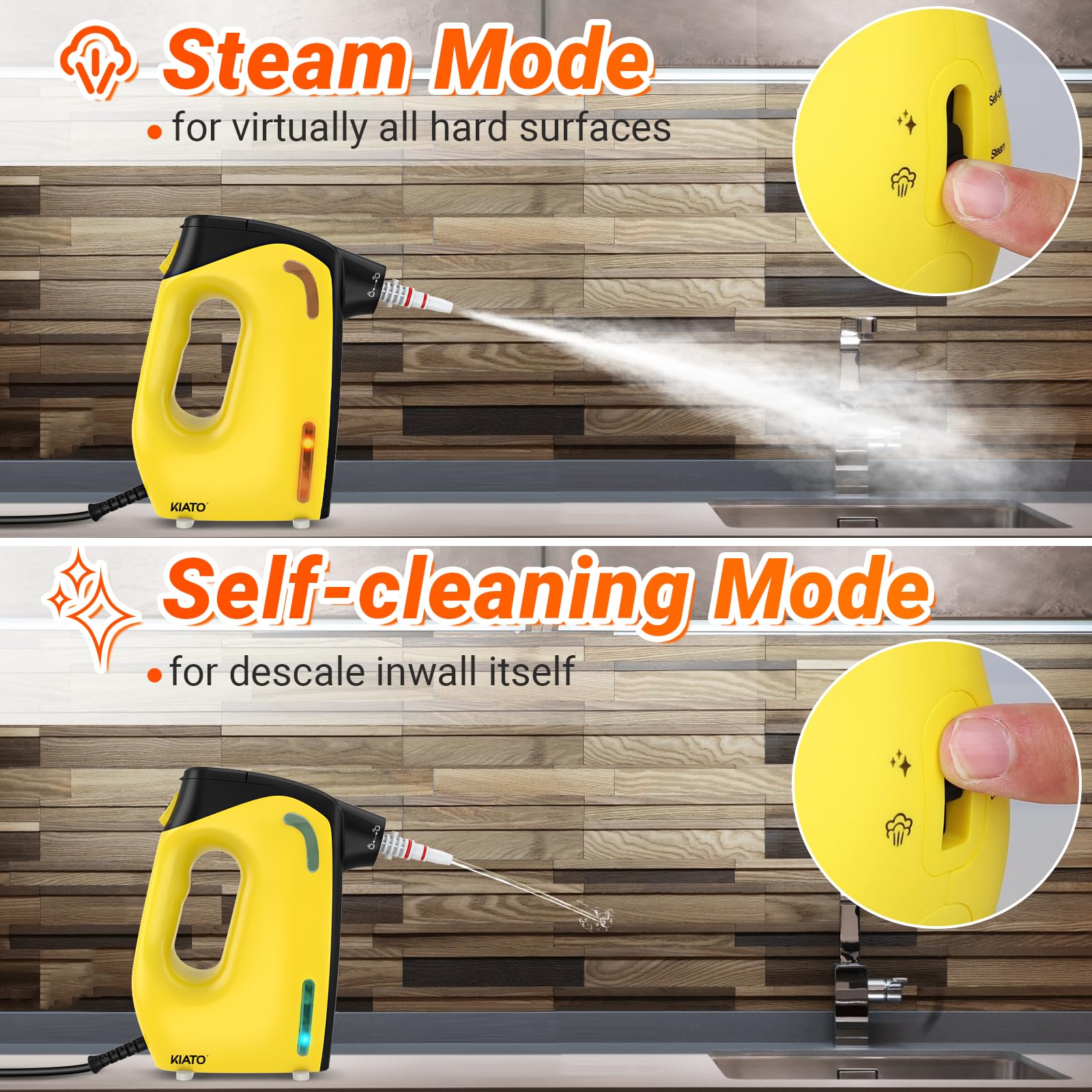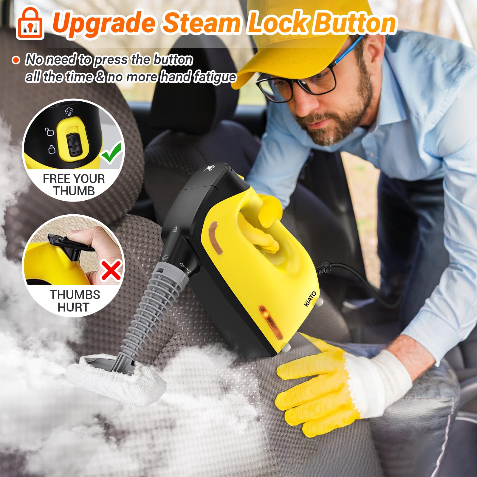 Handheld Steam Cleaner, Kiato Steamer With Lock Button For Hands, 120โ Continuous Steam, Unlimited Use Time, For Cleaning Home Furniture Upholstery Sofa Grout Tile