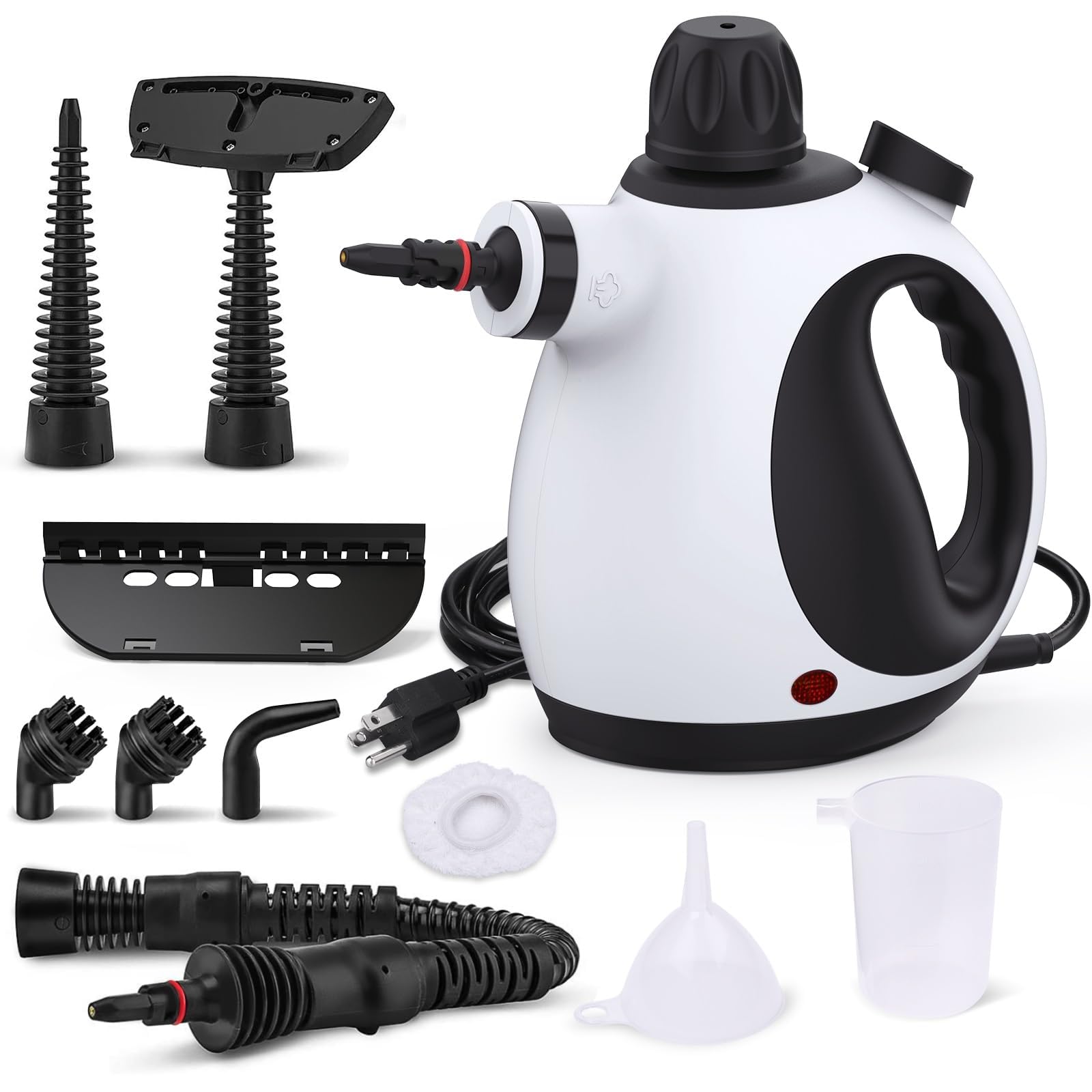 Handheld Steam Cleaner, Steam Cleaner For Home With 10 Accessory Kit, Multipurpose Portable Upholstery Steamer Cleaning With Safety Lock To Remove Grime, Grease, And More, White