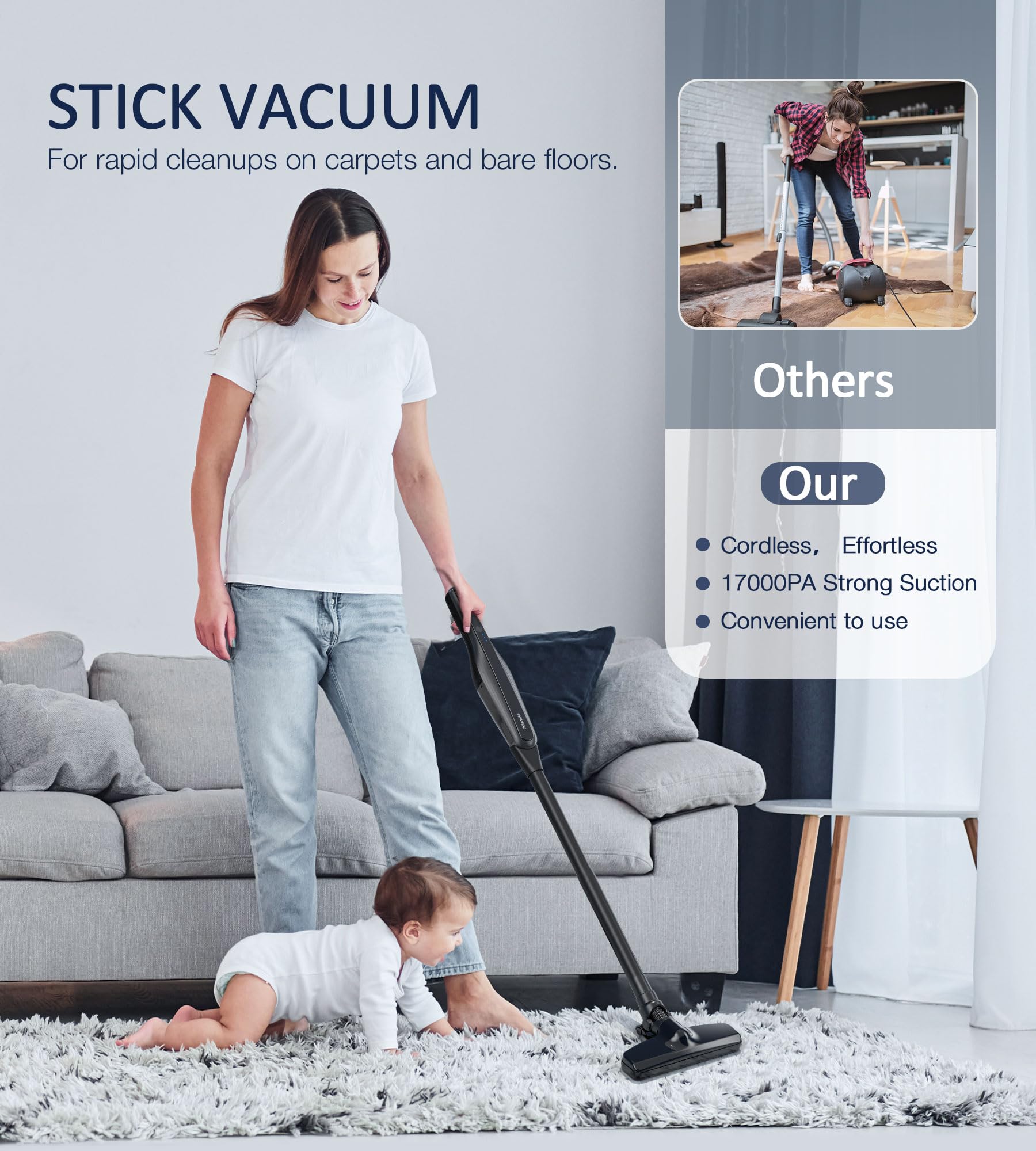 Handheld Upright Vacuum Cleaner Cordless For Home, 17000Pa Powerful Suction Cordless Stick Vacuum,d Lightweight Electric Broom Rechargeable Handheld Vac For Hardwood Floor Car Pet Hair