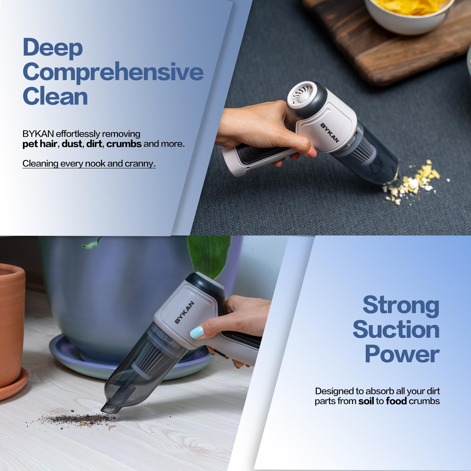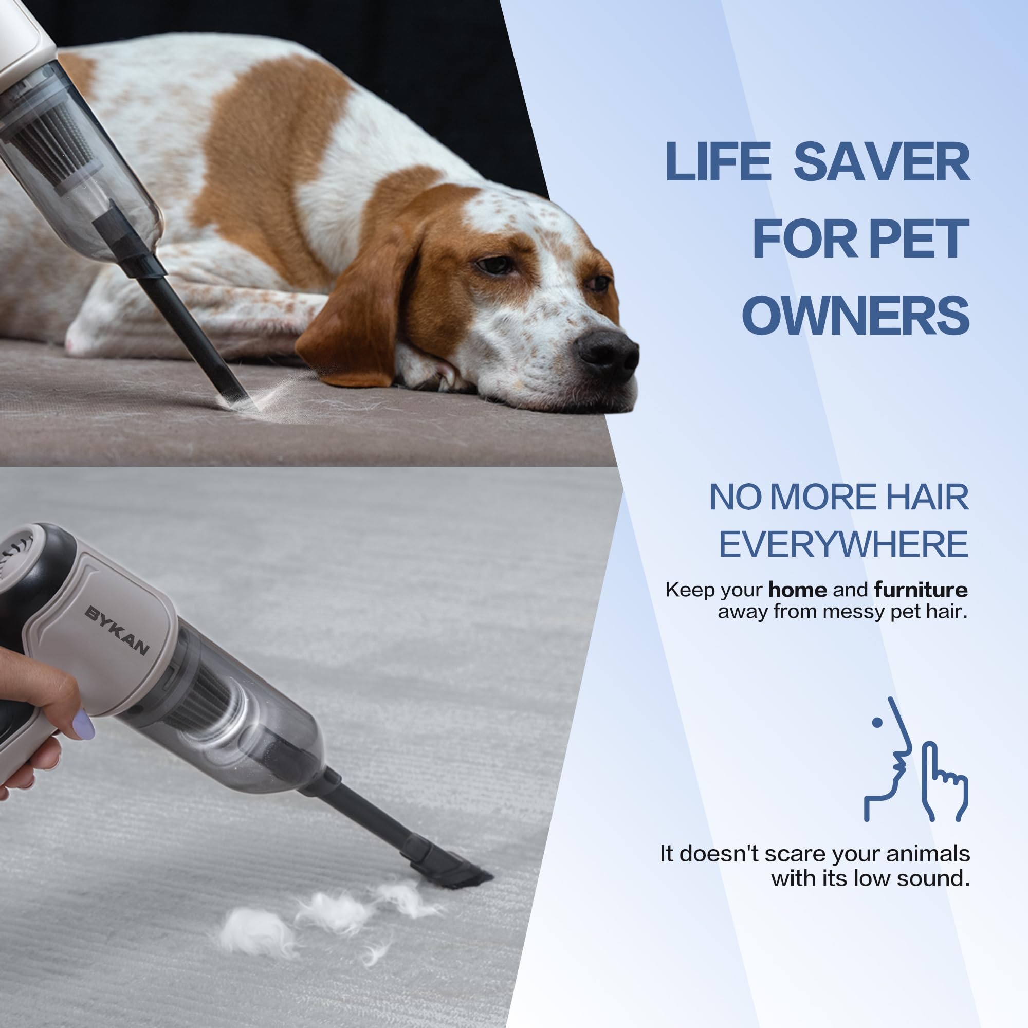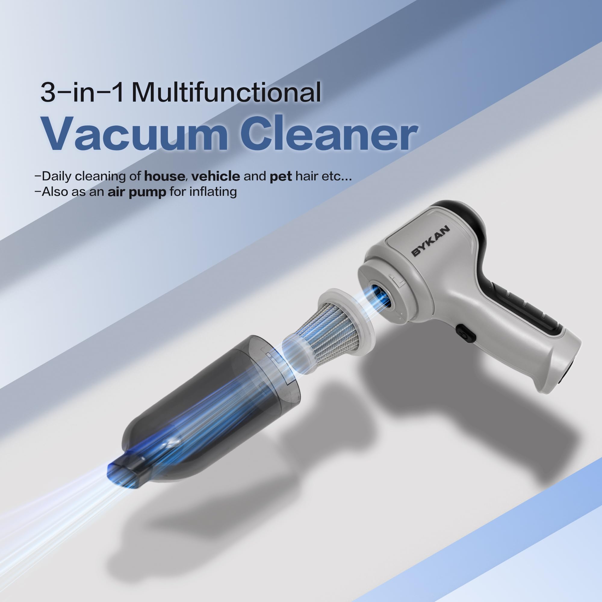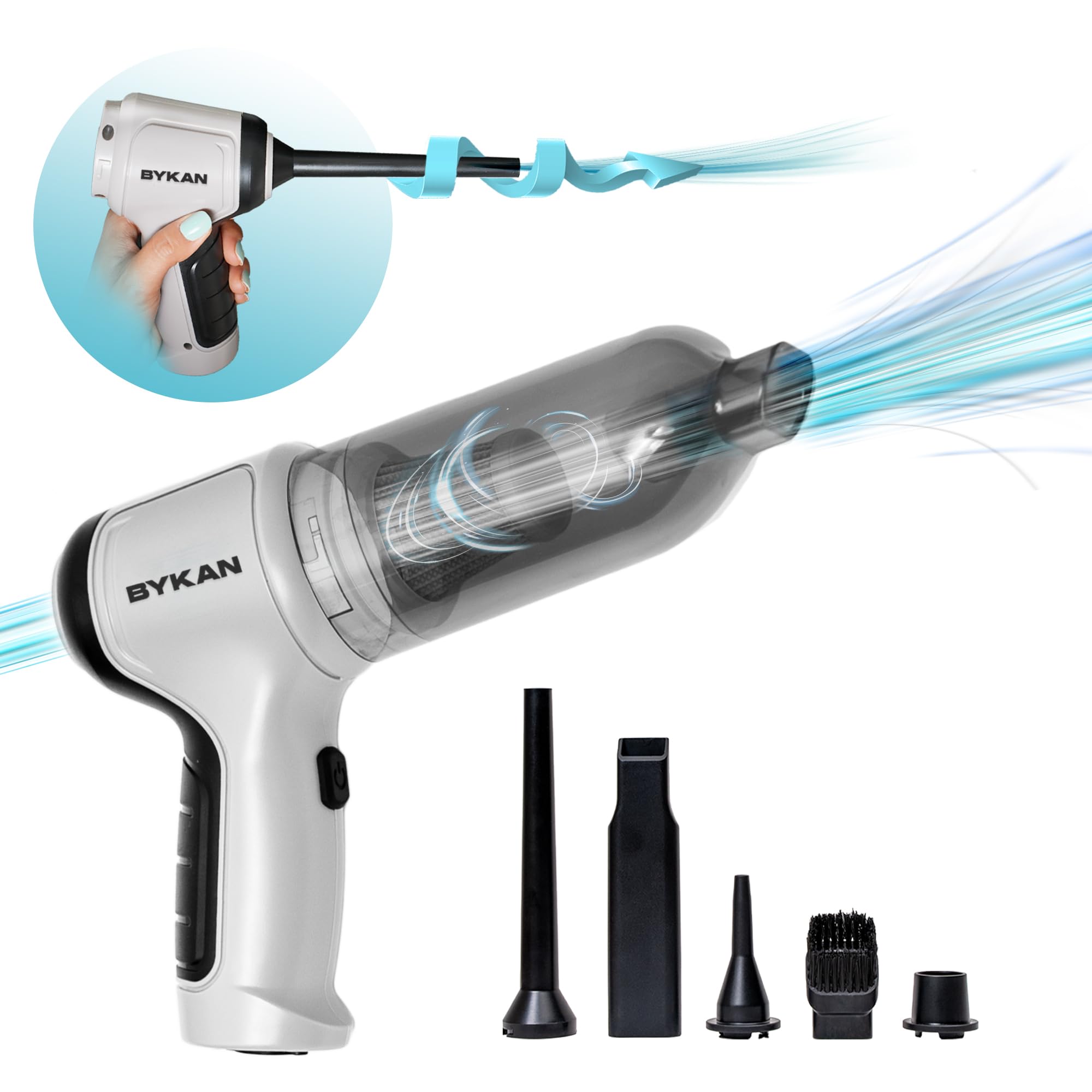 • A Must for Your Household: Tired of constantly struggling with stubborn pet hairs that refuse to come off Would you like to make sure your keyboard is properly clean without having to use poor quality improvisations The BYKAN 38000 RPM all in one cordless car vacuum cleaner is the perfect choice