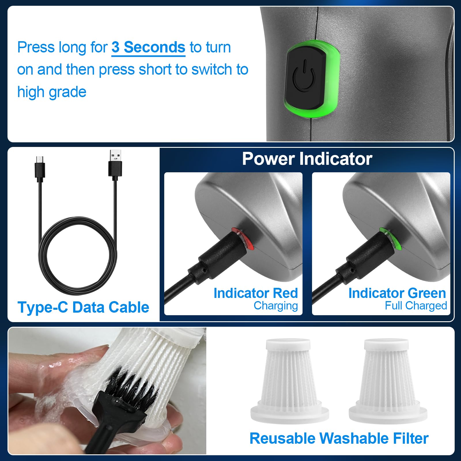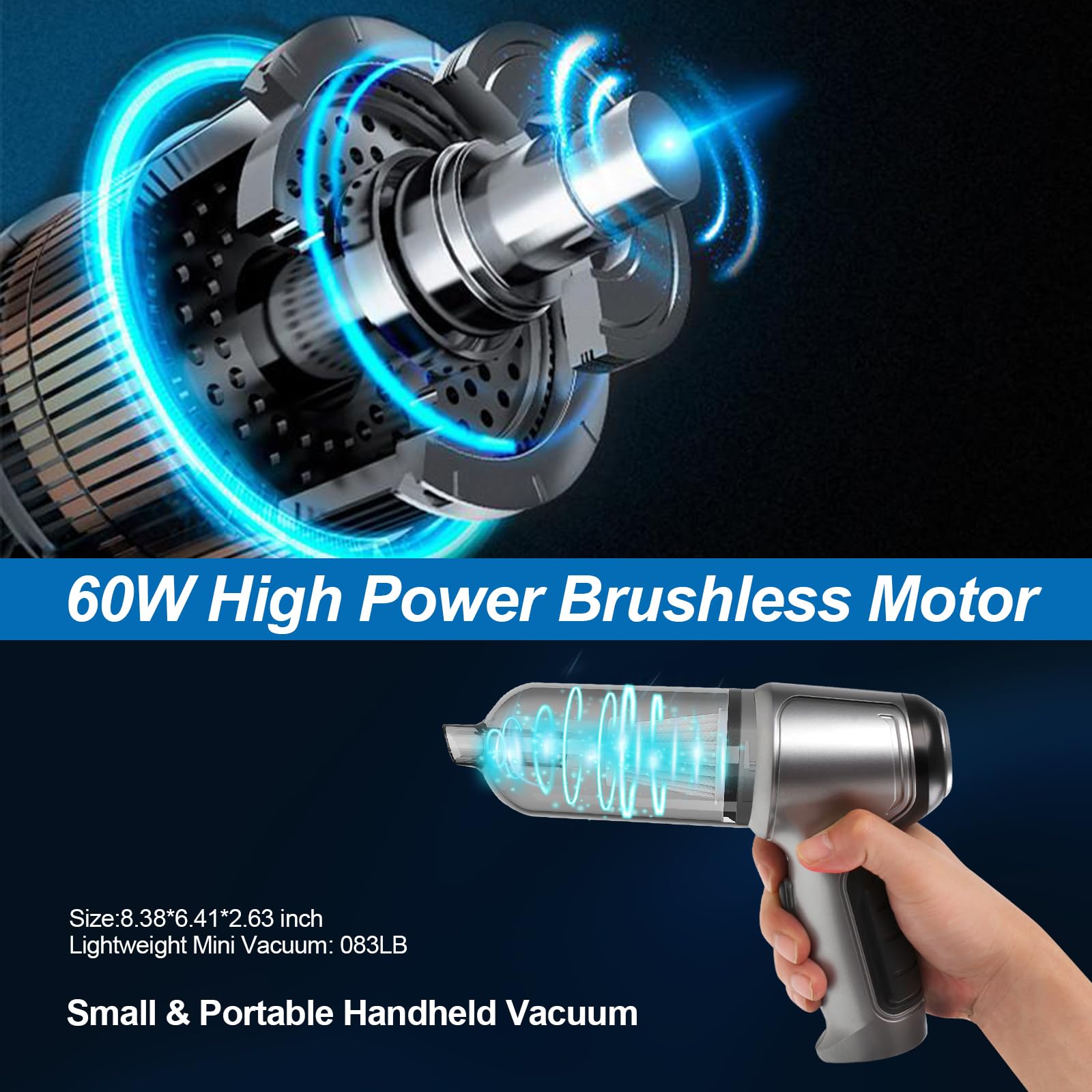 Handheld Vacuum Cordless 12000Pa Car Vacuum Portable Cordless High Power Small Vacuum Cleaner 3 In 1 Wireless Portable Mini Hand Vacuum For Pet Keyboard Car Office And Home