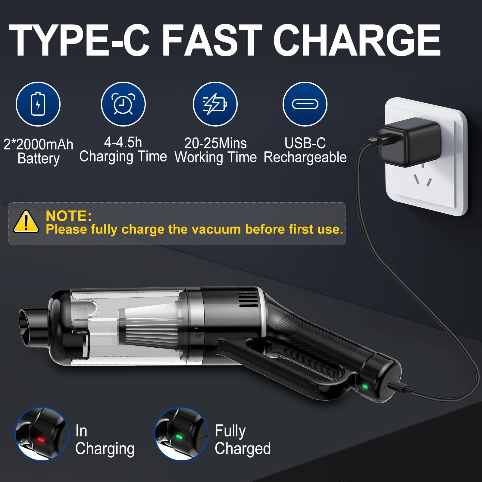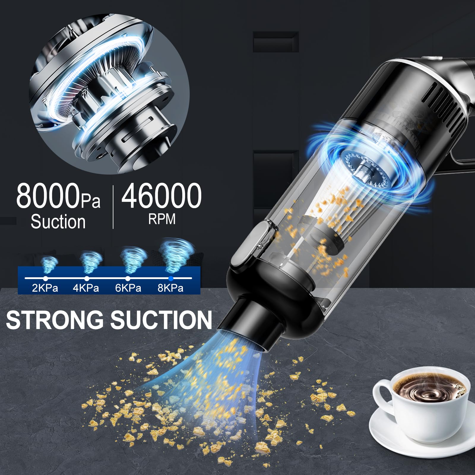 Handheld Vacuum Cordless,Car Vacuum Cleaner With Large Capacity Dust Bin,Hand Held Vacuum Cordless Rechargeable,Mini Hand Vacuum With Multi Accessories,Lightweight Portable Vacuum For Car,Home