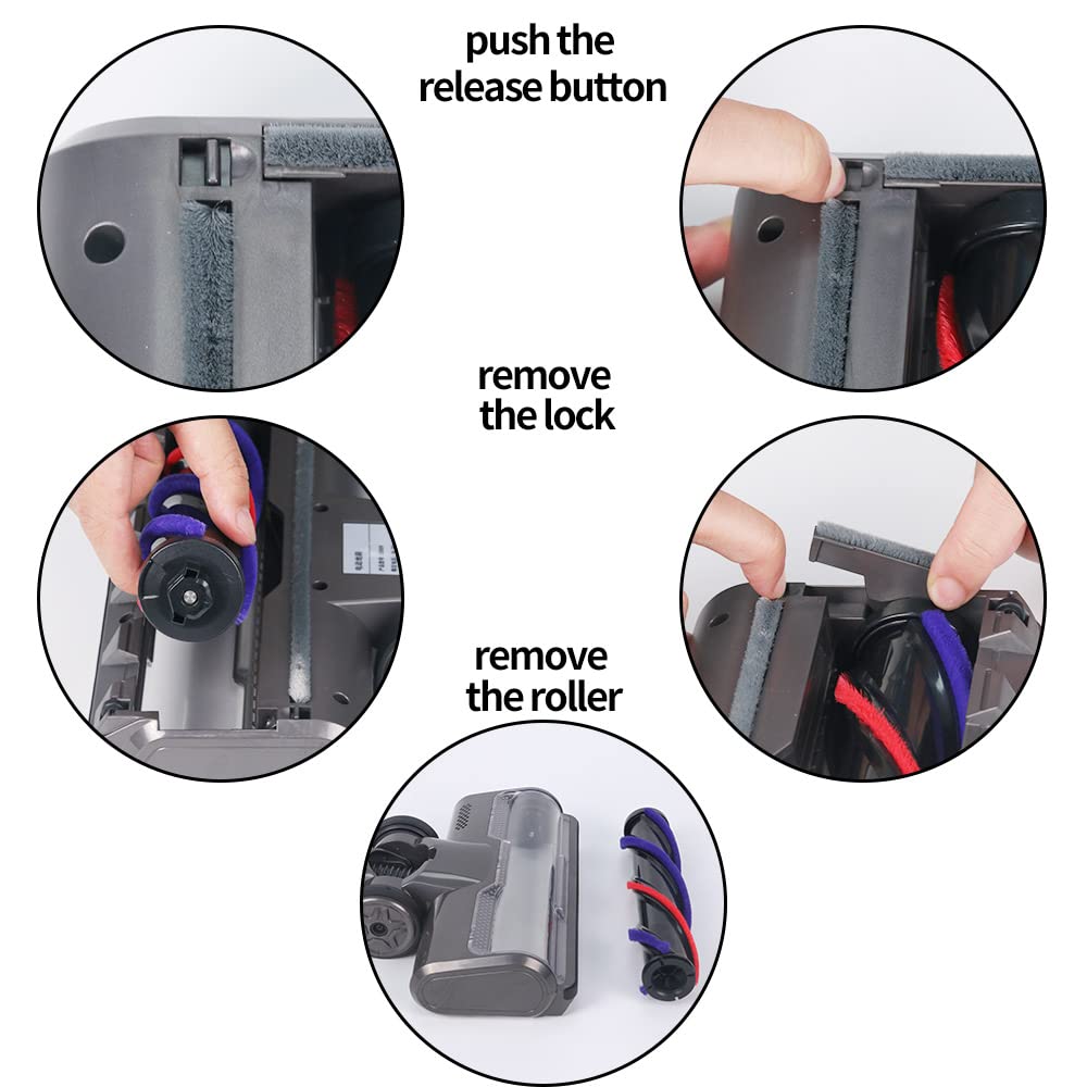 Hardwood Floor Attachment For Dyson V7 V8 V10 V11 V15 Sv10 Sv12 Sv14 Animal Absolute Vacuum Cleaners With Led Headlights, Bristle Roller Brush Head Parts