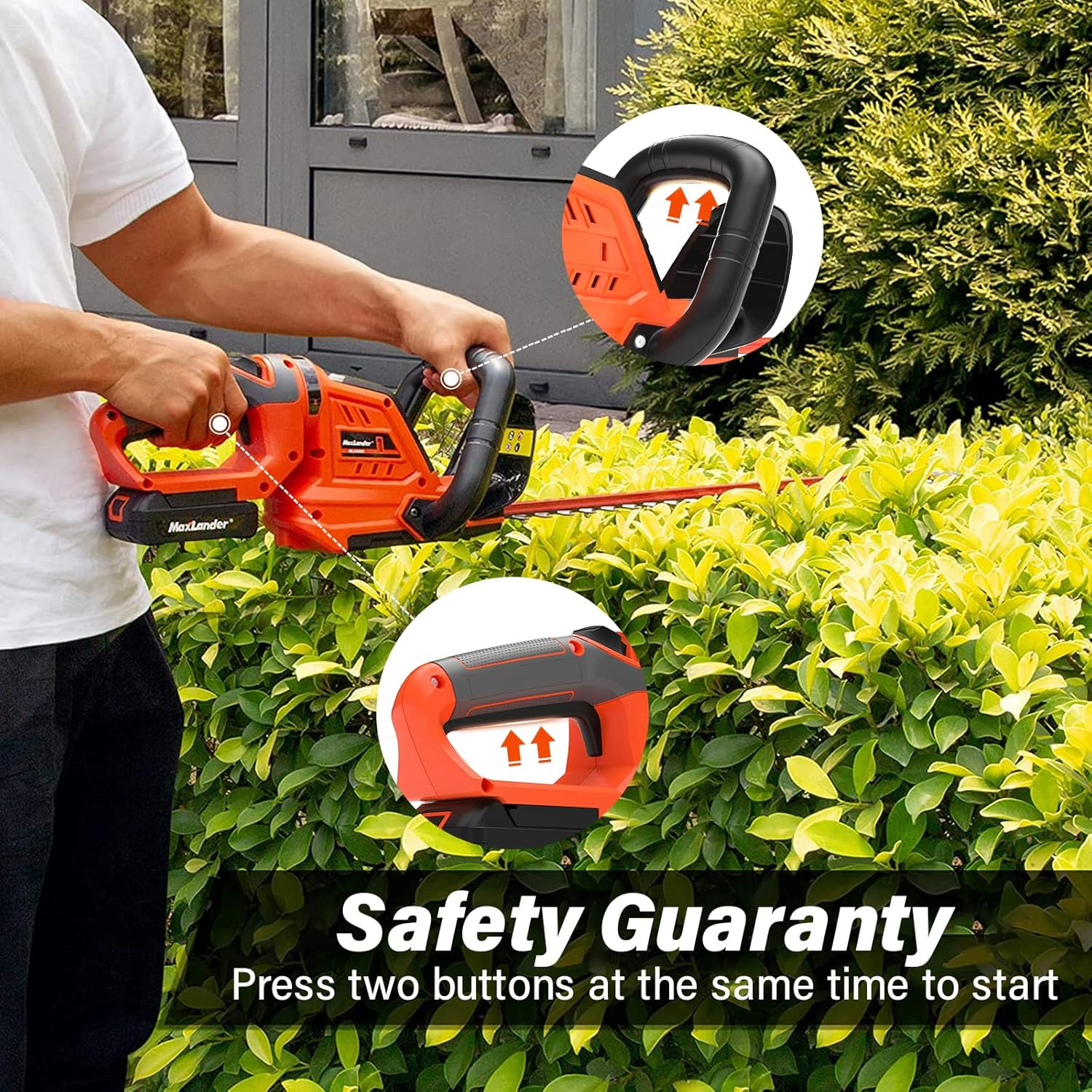 Hedge Trimmer Maxlander Hedge Trimmer Cordless with 22”Dual-Action Blade, Electric Hedge Trimmer Include 20V 2.0Ah Battery and Fast Charger