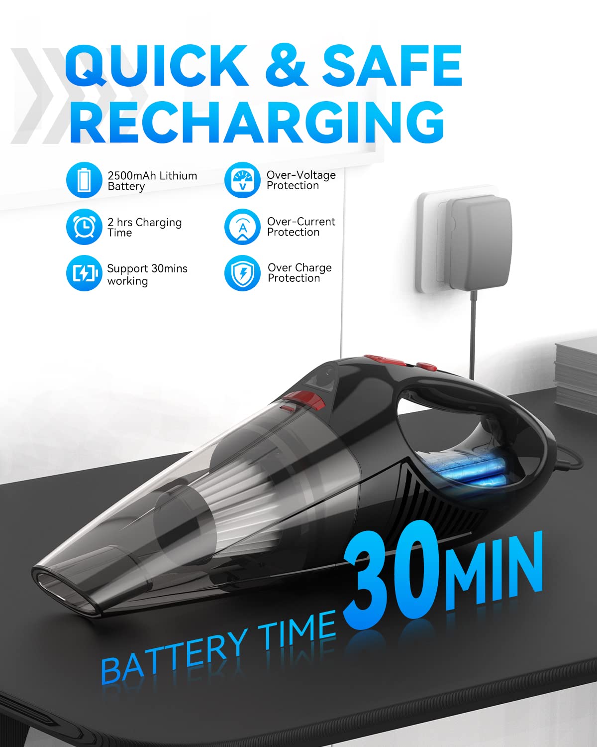 High Power Handheld Vacuum Cordless, Car Vacuum Cleaner Rechargeable,Mini Portable Rechargeable Wireless Vacuum Cleaner