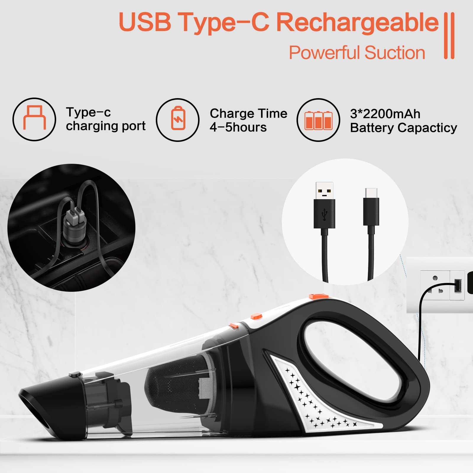 Hihhy Handheld Vacuum Cordless Car Vacuum Cleaner Rechargeable Lightweight Hand Held Small Portable Vac With Usbc Cable For Home, Car