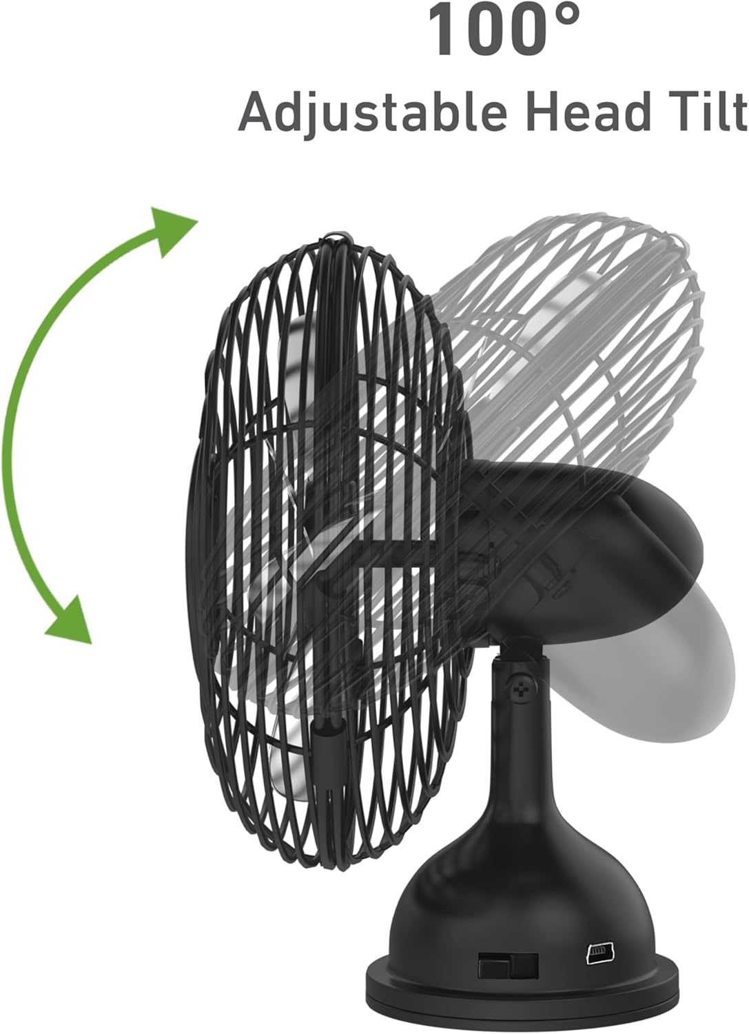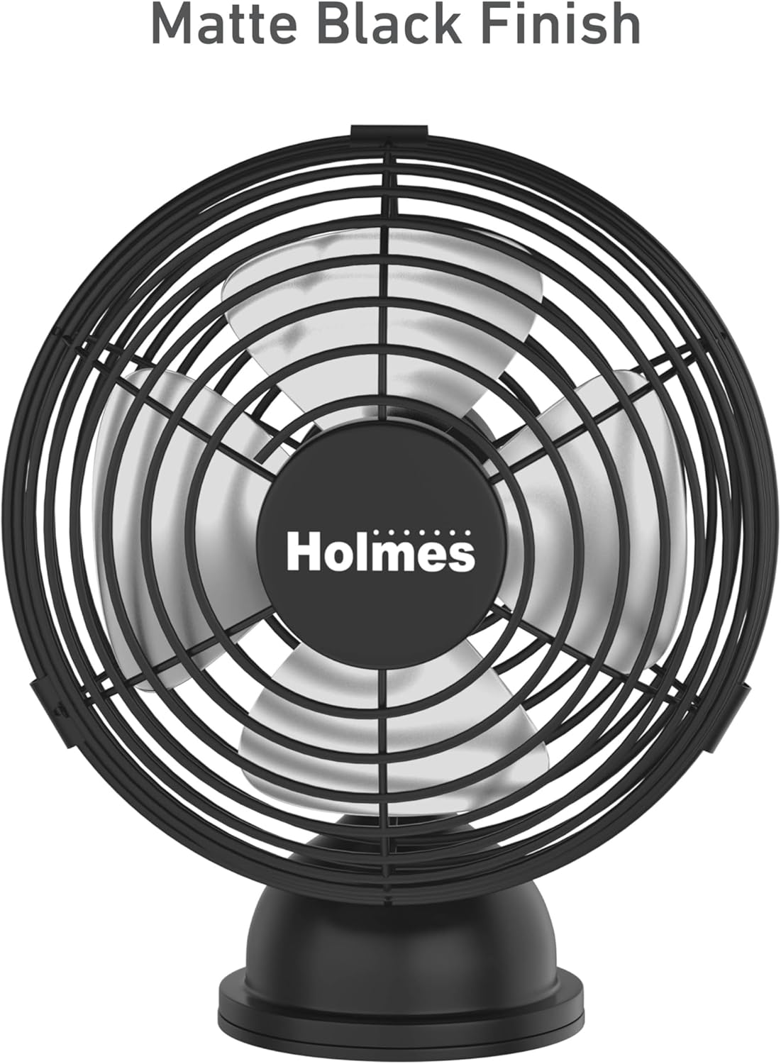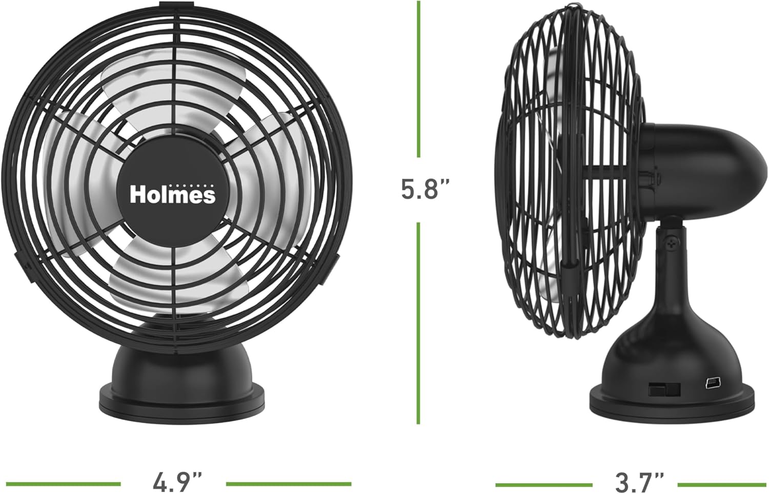 Holmes 4 Mini Heritage Desk Fan, UsbPowered, Single Speed, 4 Blades, Adjustable 100° Head Tilt, Metal Construction, Ideal