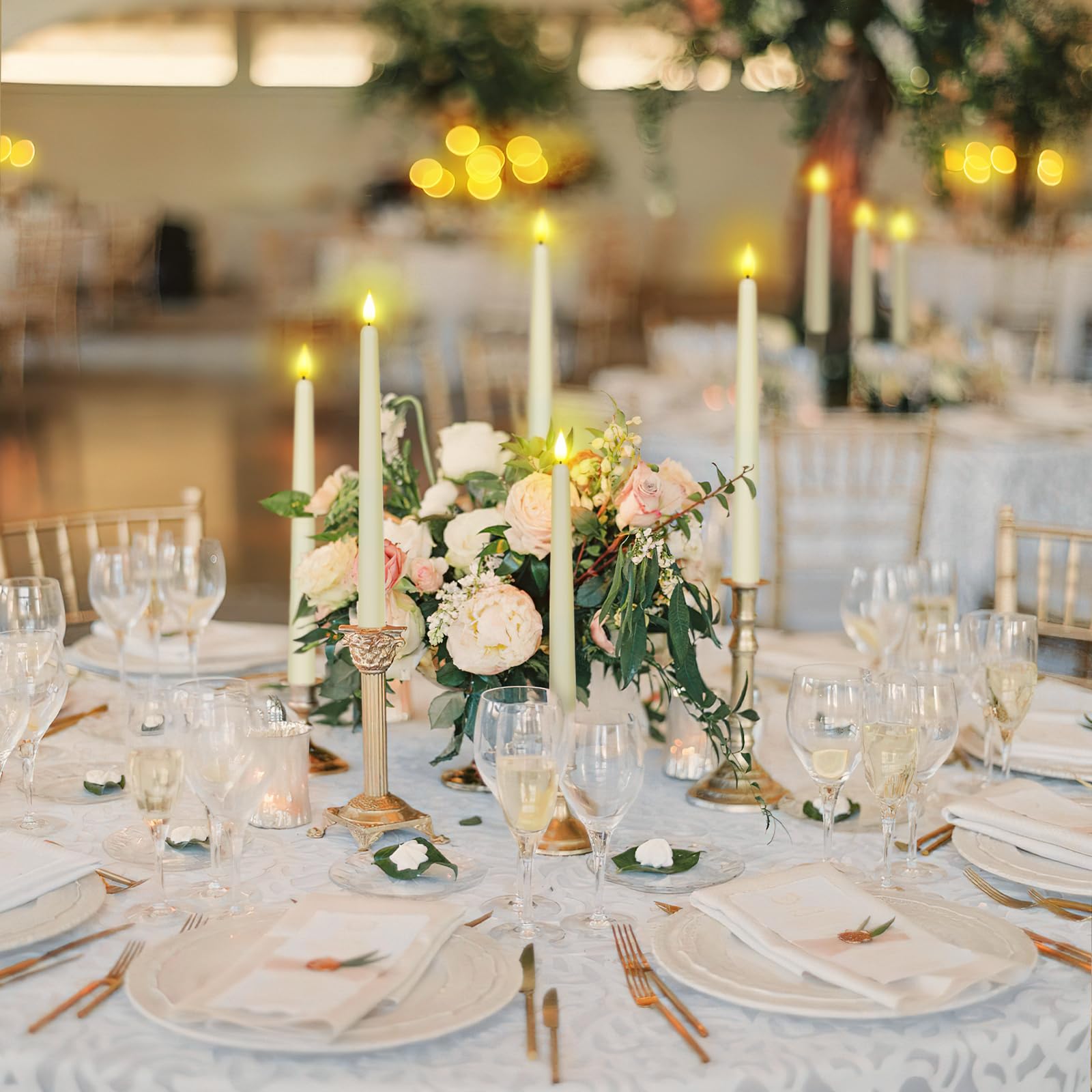 Homemory 12 Pcs Flameless Taper Candles with Remote Timer Dimmer, 11 inches Ivory Taper Candles Battery Operated, Plastic LED Candlesticks with Flickering Flame for Halloween Christmas Church Wedding