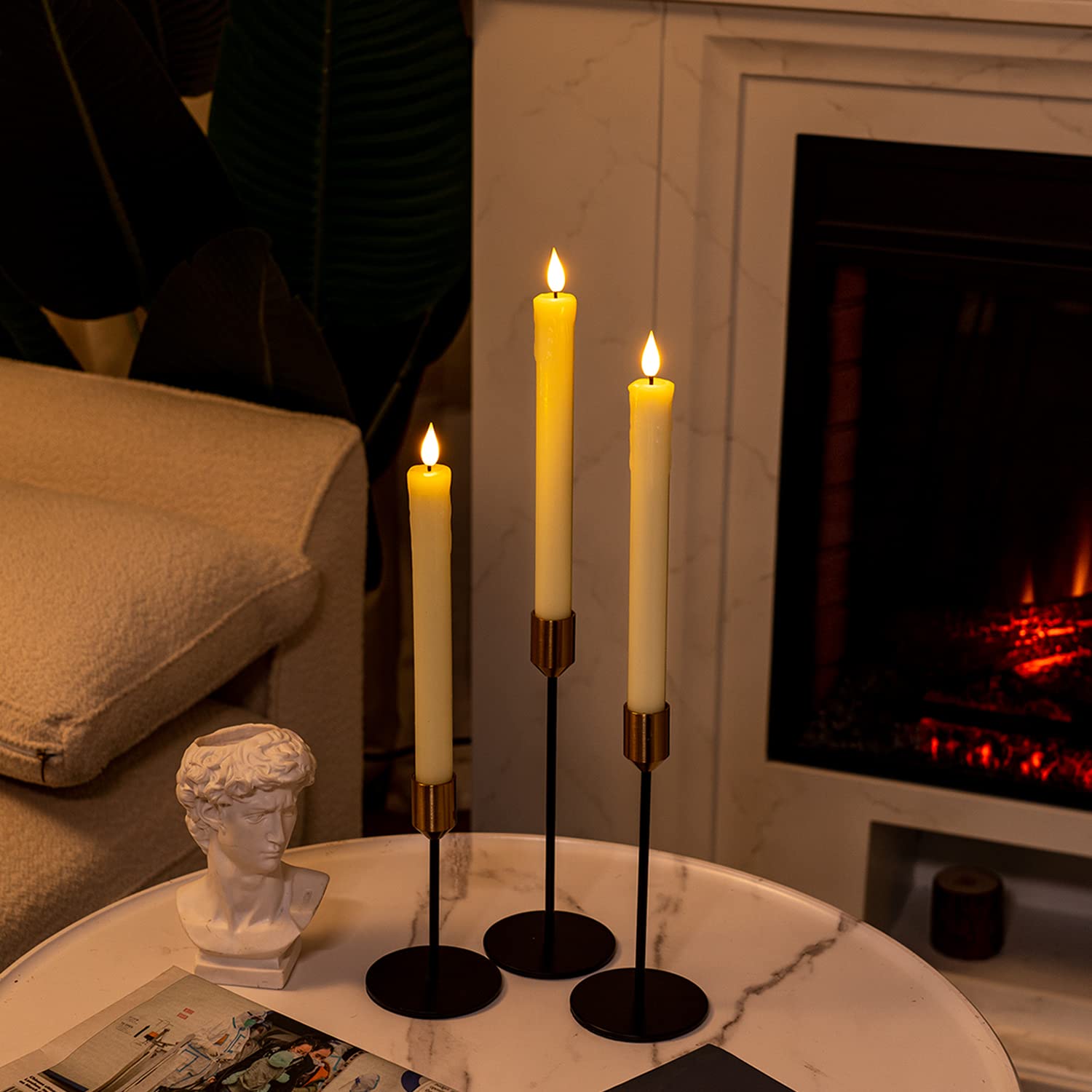 Homemory Real Wax LED Flameless Taper Candles with Remote Timer, 9.6 Inches Ivory Candlesticks, Dripless Battery Operated 3D Flickering Flame for Fireplace Xmas Halloween