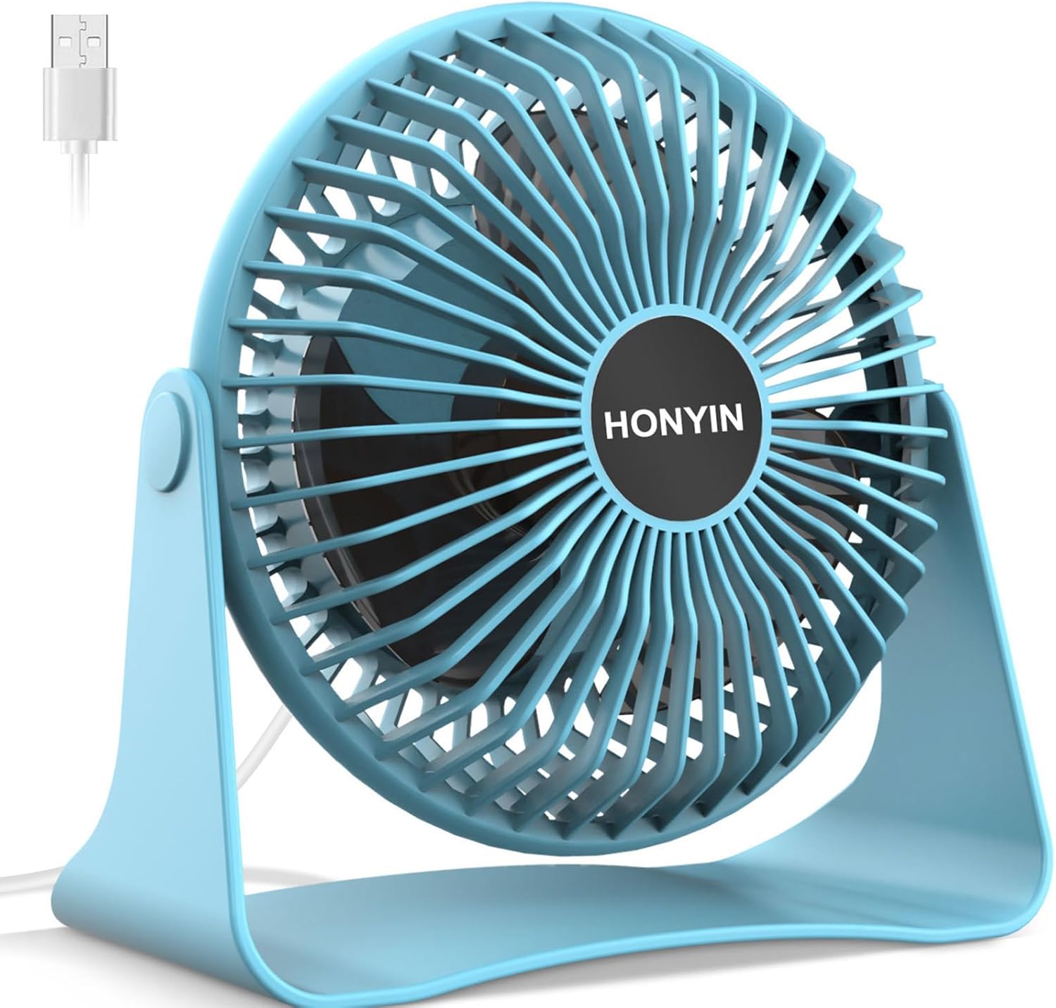 Honyin Small Usb Desk Fan, 3 Speeds Desktop Table Cooling Fan, 360° Rotatable, Strong Wind, Quiet Personal Little Fan Powered