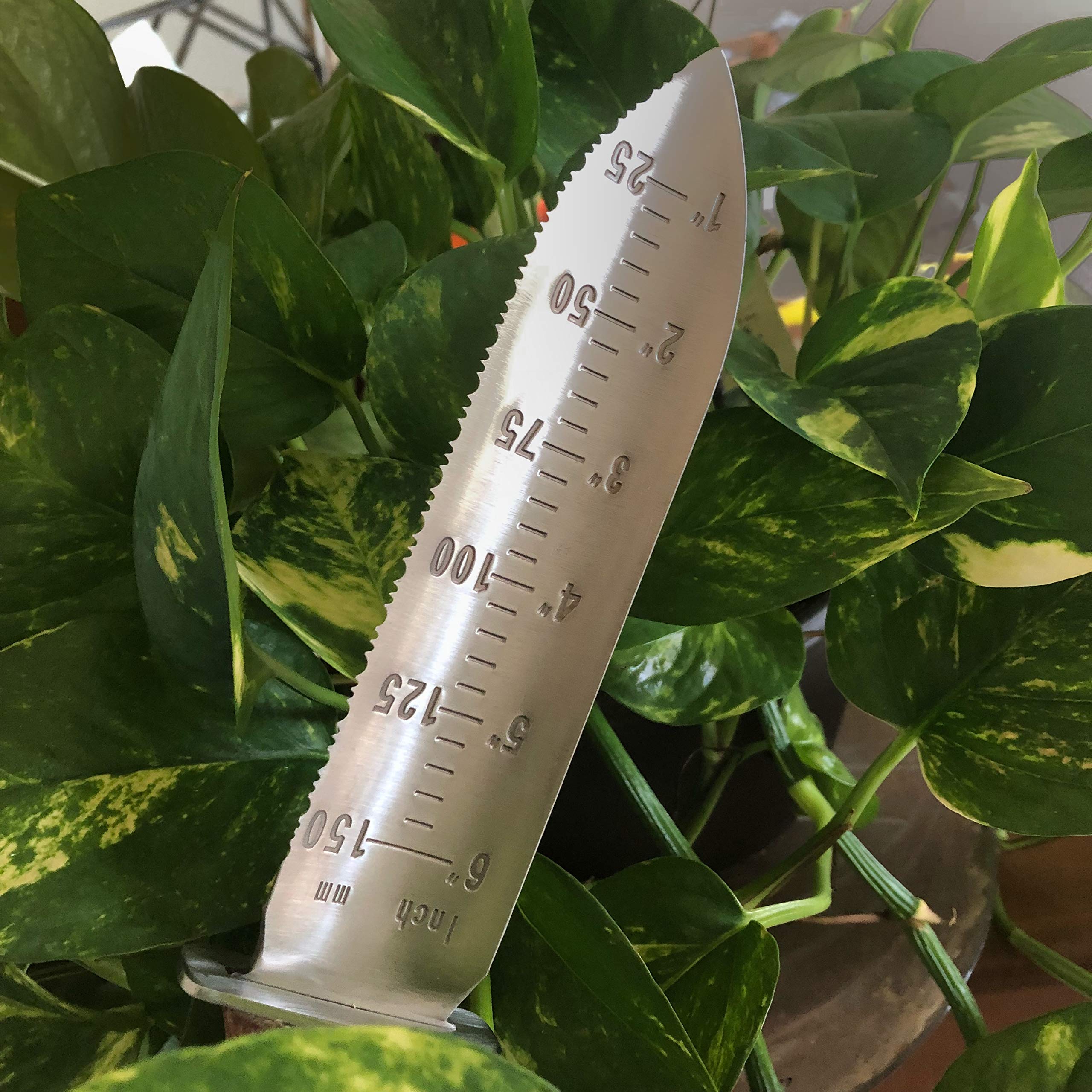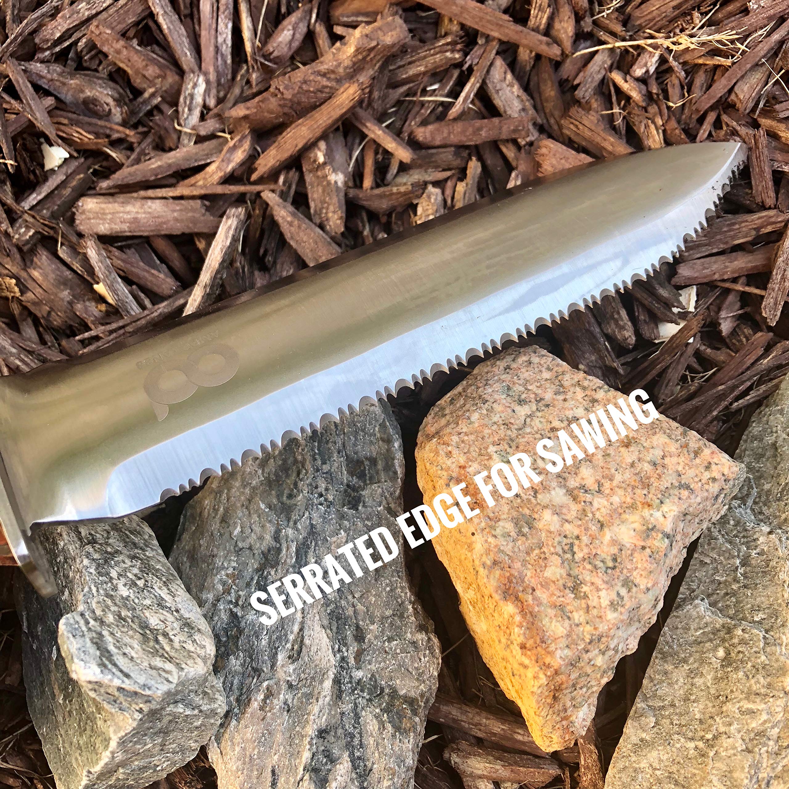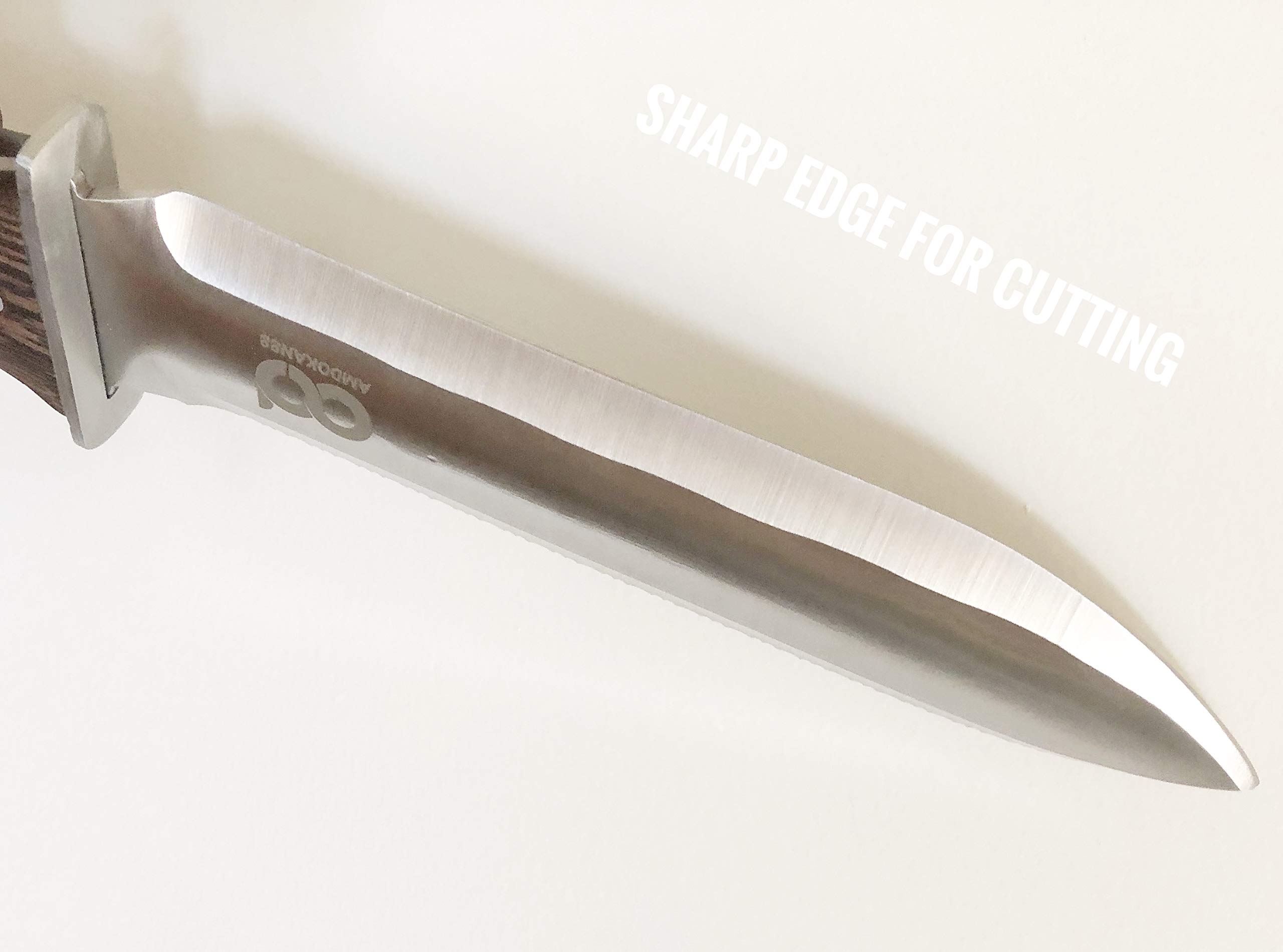 Digging Knife in Leather Sheath, Steel Sharpening Rod and Sharpening Stone Included, Perfect for Holiday Gift, Camping, Weeding, Pruning, Full Tang hardwood Handle Hori-Hori Garden knife. Uses The Amdokan88 Hori-Hori garden knife is a multi-purpose tool that can be used to weed, dig, prune, transplant, measure, cut, harvest, split perennials, chop, and much more. This Hori Hori knife can be used by campers to chop wood, meat, vegetable, and fish. The versatile Hori Hori knife is certainly a valuable addition in your survival kit Ideally designed The sturdy stainless steel concave shaped blade makes it an ideal tool for digging out weeds with deep root system. Just stick the knife under the roots push back and forth with a twist, and pull the weeds out. The gradation marks on the blade allow to measure soil depth for seeds and bulbs. The full tang handle secured with three metal rivets and the ergonomically designed protective hand guard provide excellent control for comfort and stability. Hori-Hori knife Care After use, clean your knife thoroughly by rinsing under running water. Make sure to remove all dirt using a brush. Wipe dry with a clean cloth and apply oil to prevent rusting and maintain shine. Store inside the leather sheath in a cool and dry place. Hone your Hori-Hori knife regularly after heavy use to realign the blade edge. Sharpen as needed. Wipe the blade and the honing rod clean with a soft cloth after honing.