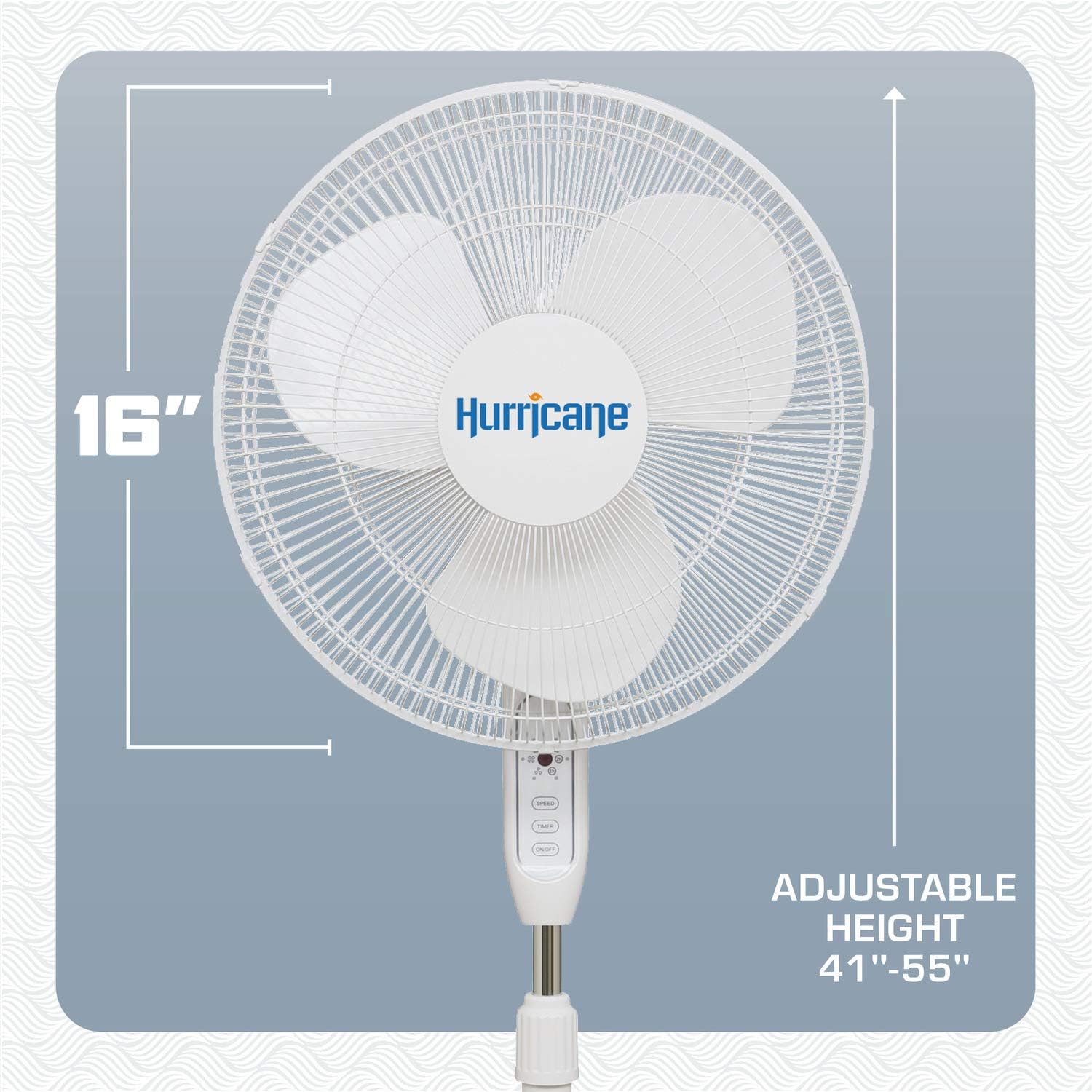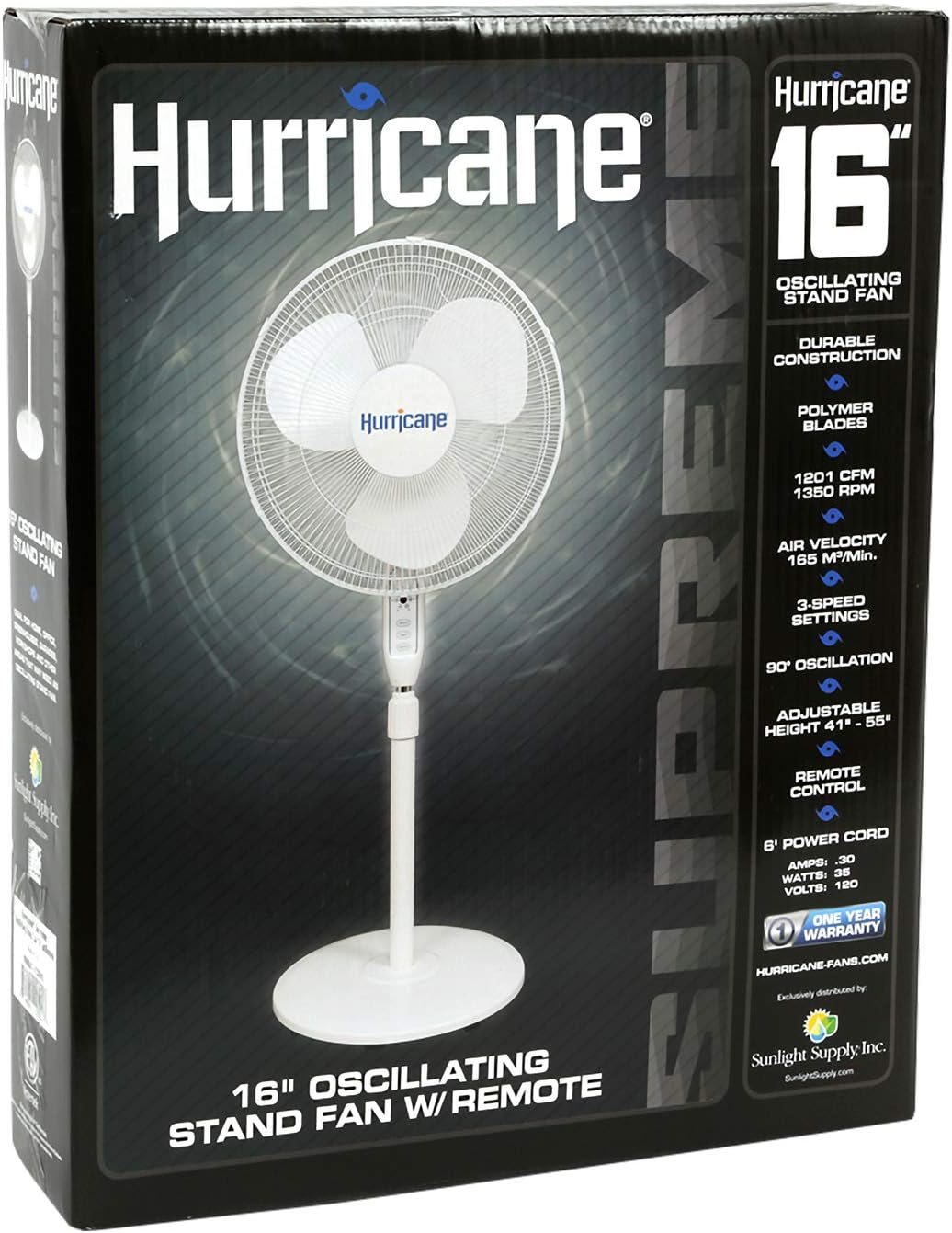 Hurricane 16 Supreme Oscillating Stand Fan W/Remote 3 Speed High Effeciency Motor Runs 1201 Cfm On High 90 Degree Side To Side