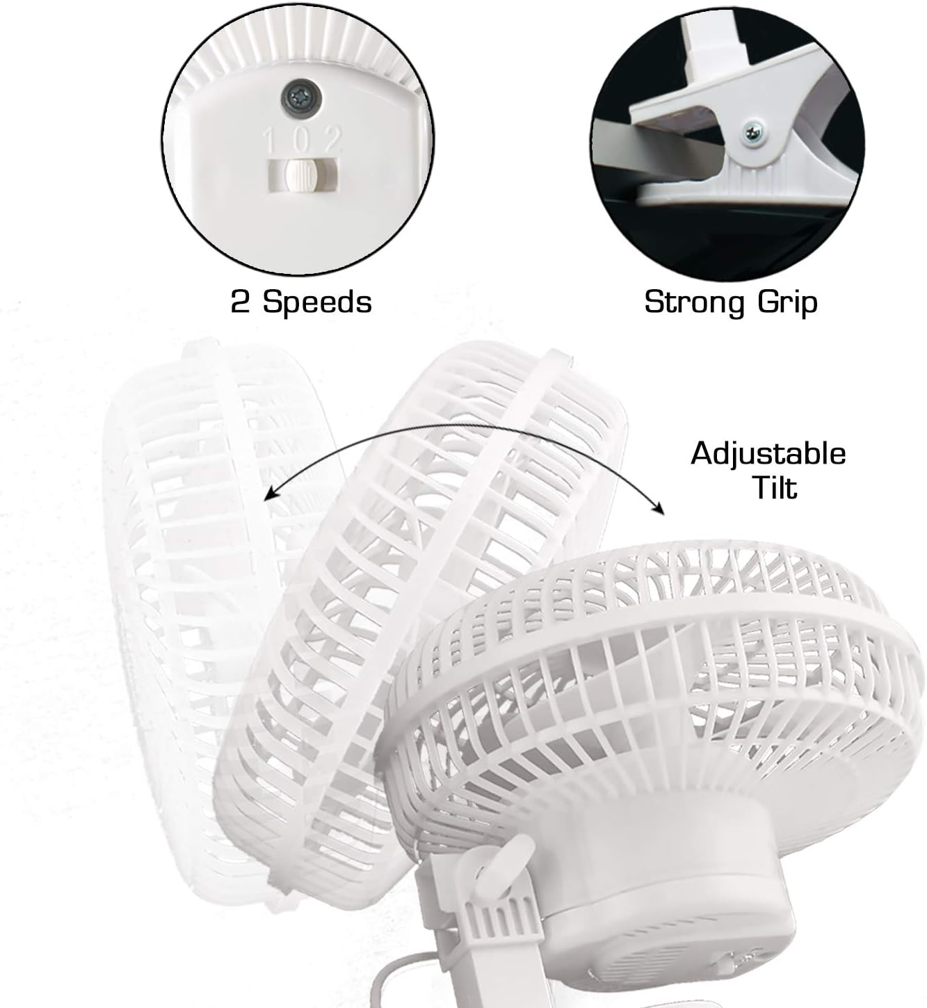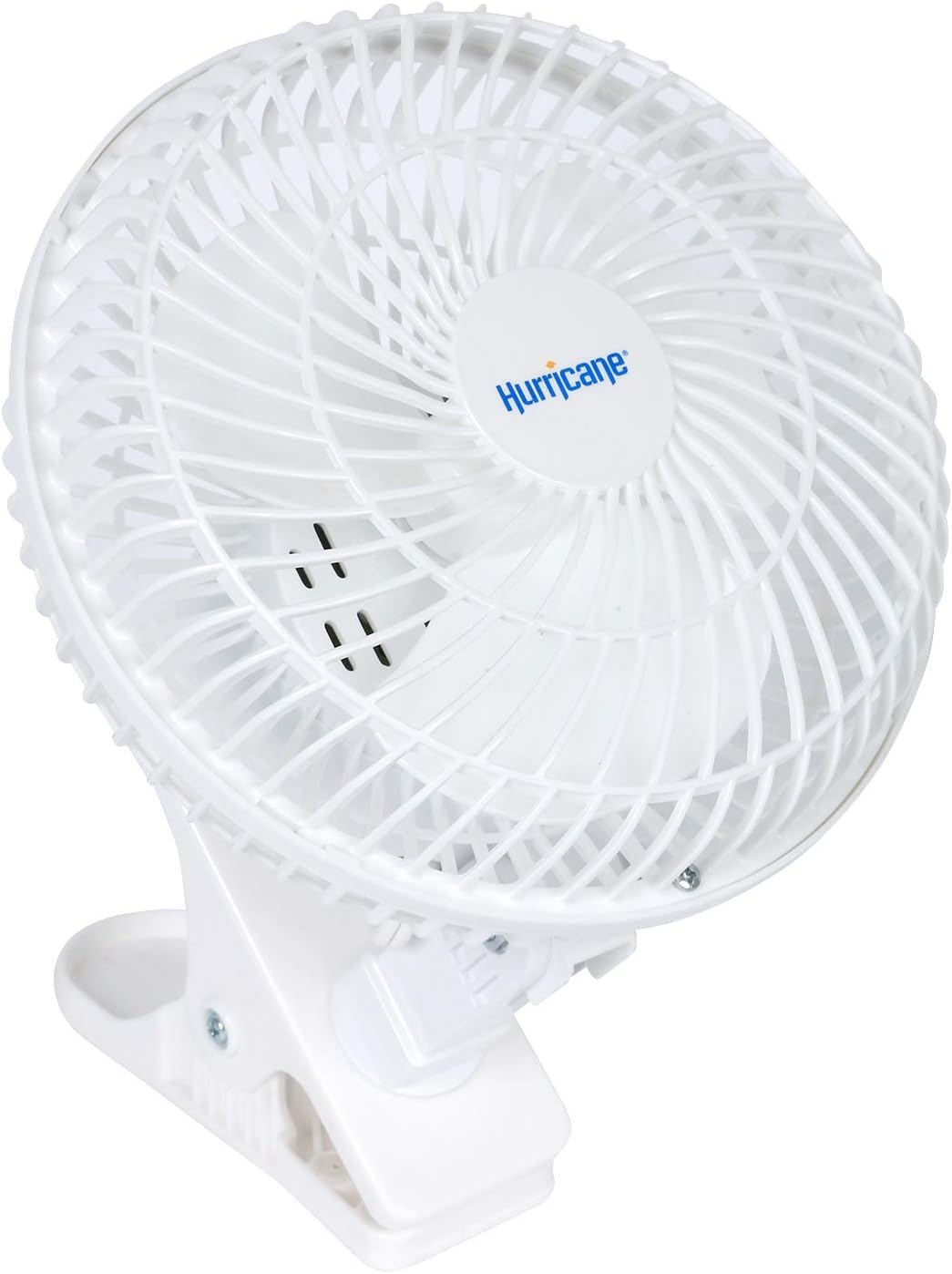 For a refreshing breeze and controlled airflow wherever you need it, look no further than the Hurricane Classic 6Inch Table Clip Fan, suitable for any indoor surface. Its compact size allows it to snugly fit into tight spaces while still delivering powerful ventilation, featuring 2 adjustable speeds and a tilt mechanism for personalized airflow. With a highspeed setting, this clipon fan operates at 306 CFM and 2350 RPM, ensuring efficient cooling. The sturdy spring clamp securely holds the fan in place during use, providing peace of mind against unexpected slips or falls, especially when mounted high on shelves or table surfaces. Its convenient 5foot power cord flexibility in fan placement, making it great for various environments such as grow tents, apartments, offices, studios, cubicles, and dormitories. Despite its powerful motor, the fan operates quietly, without any distracting buzzing or humming, thanks to its quality construction featuring a metal fan grill and steel neck support. Designed for reliability and durability, the Hurricane 6Inch Table Clip Fan ensures consistent performance in both small and large areas. Compact yet robust, this fan convenient portability, secure mounting, and refreshing airflow whenever needed, making it an essential addition to any space seeking comfort and ventilation.