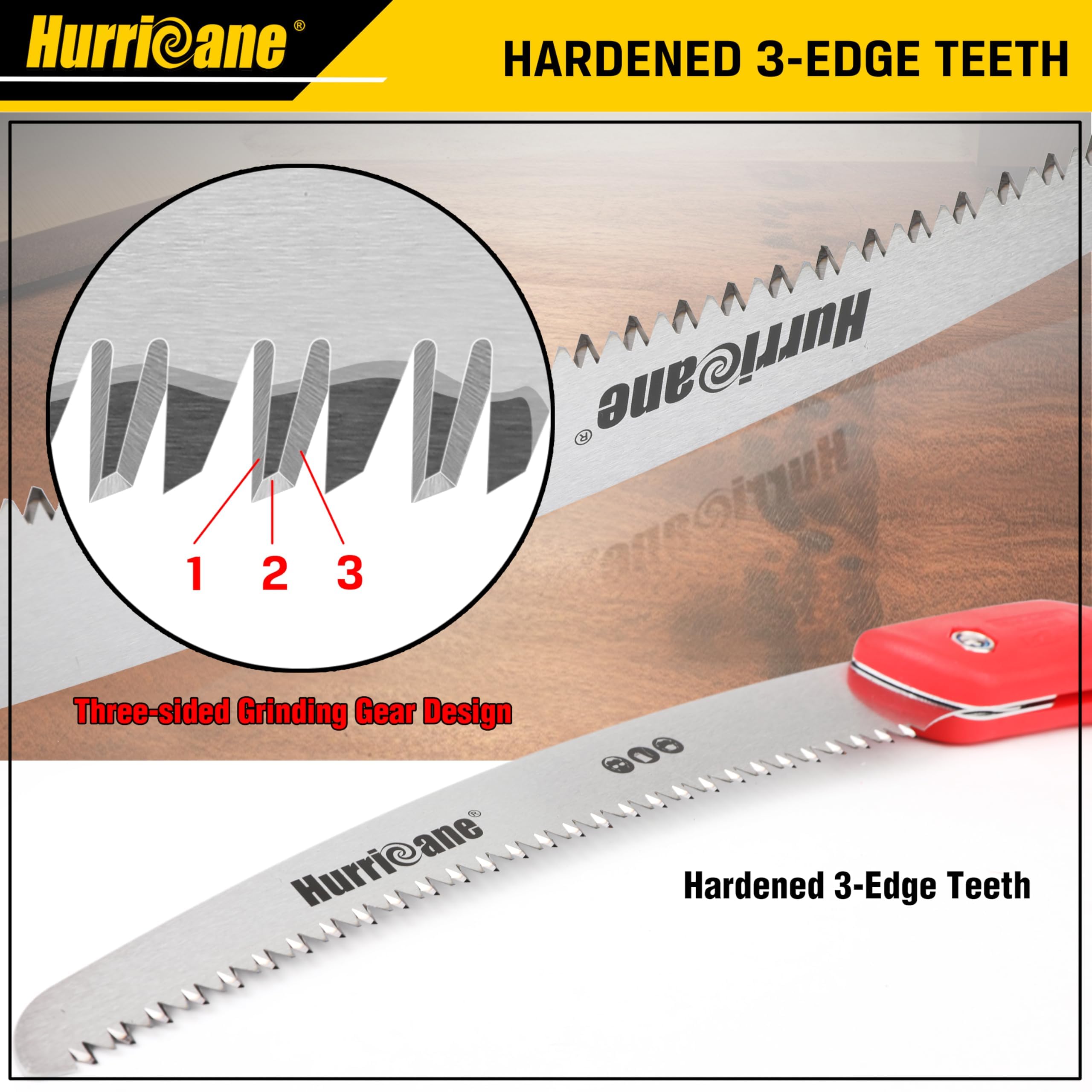 HURRICANE Folding Hand Saw, 10 Inch Pruning Saw, Hand Saw for Wood Cutting, Camping Tree Saw with SK5 Curved Blade, Triple-cut Razor Teeth, Outdoor Portable Saw for Tree Trimming, Gardening, Hiking