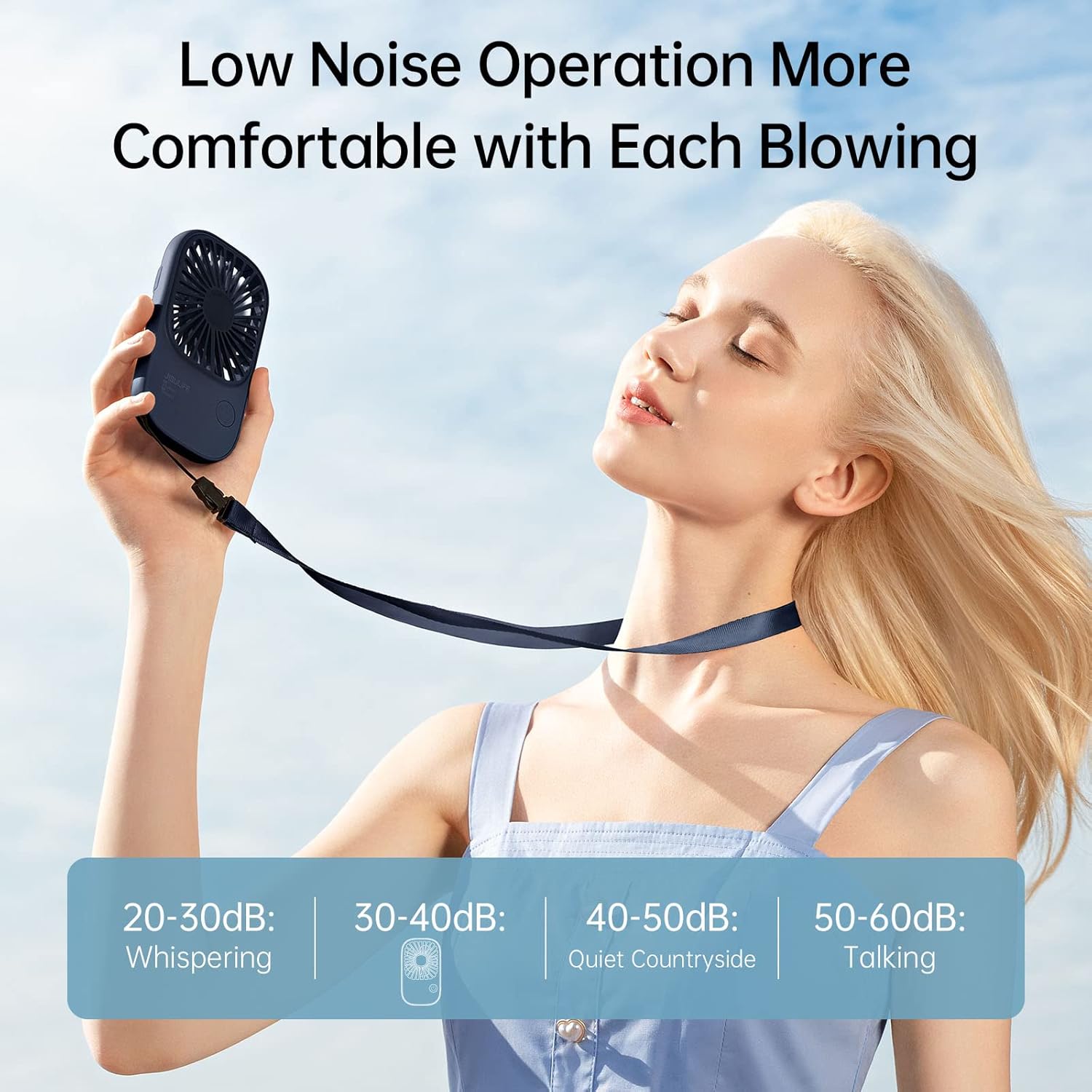 • 【Small and Portable】JISULIFE pocket mini fan comes with a long lanyard, which can be hung around the neck without having to hold the fan all the time. The rear bracket design can transform into a desktop fan in seconds. The handheld fan weight is only 104g, suitable for work, travel, outdoors, sleeping, makeup, commuting, etc. It is an ideal for men women moms kids girls boys.