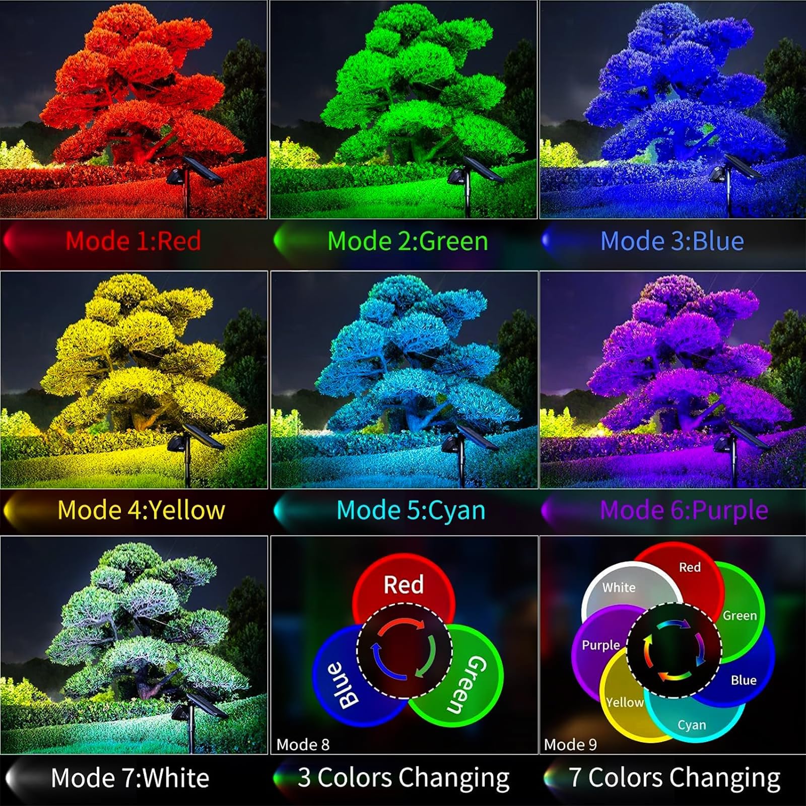 JSOT Solar Lights Outdoor Waterproof - Color Changing Solar Spot Lights Outside, Solar Powered Spotlight Landscape Lighting Halloween Spotlights for Tree Garden Yard Pathway Driveway House Christmas