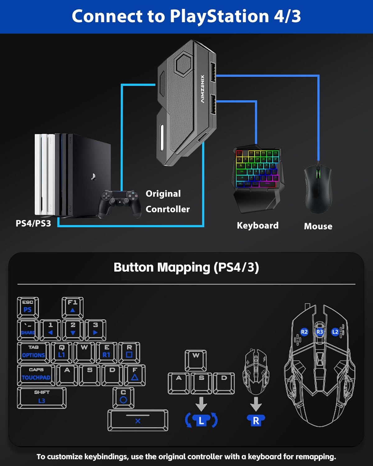 Keyword and Mouse Adapter for Nintendo Switch/Xbox One/PS4/PS3, AIMVICE Keyboard Adapter & Xbox Keyboard Adapter, Perfect for Games Consoles for FPS, TPS and RTS [2023 Upgrade Version]