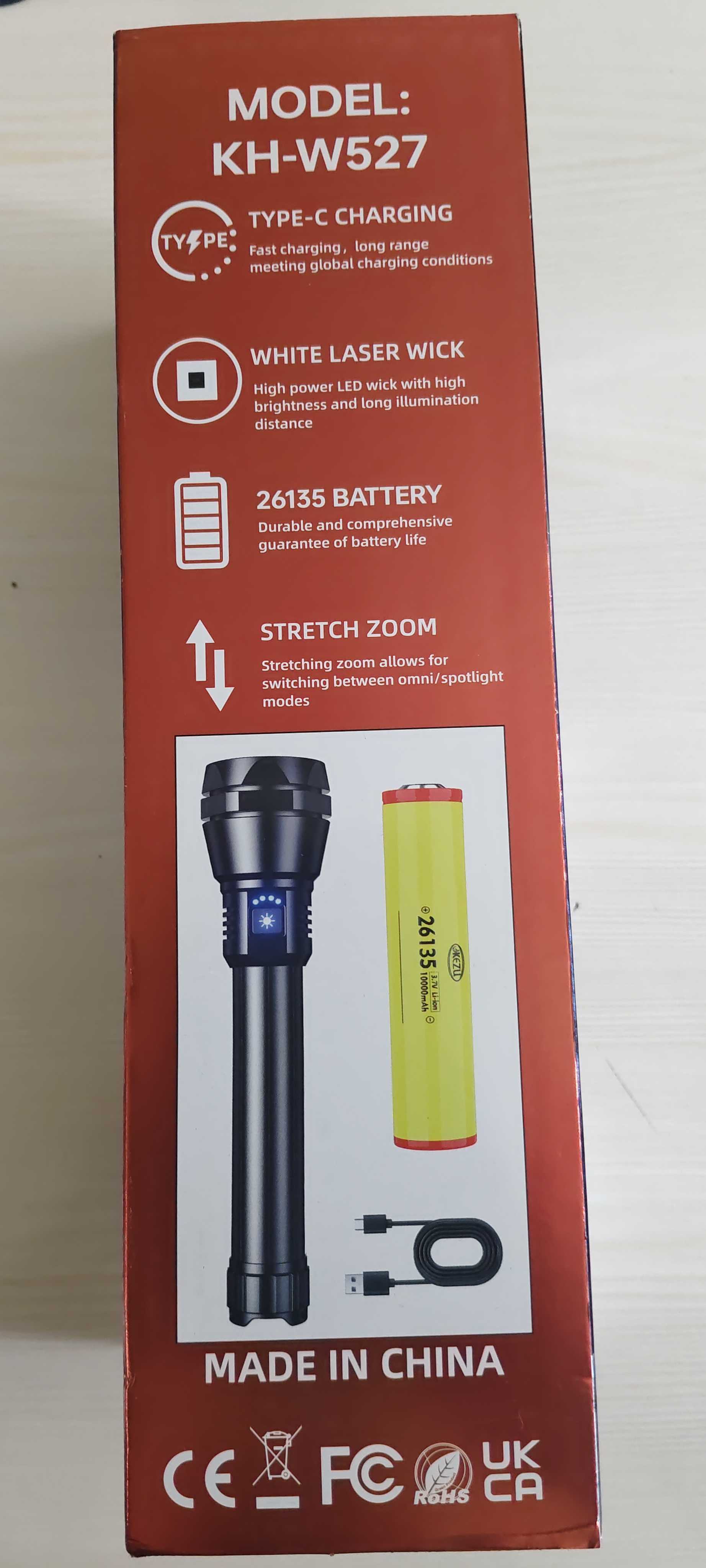 Kezu Aluminum Alloy Strong Light Flashlight , Battery Indicator , Lotus broken Window Head , White Laser Wick , 26135 Batery ( KH - W527 )