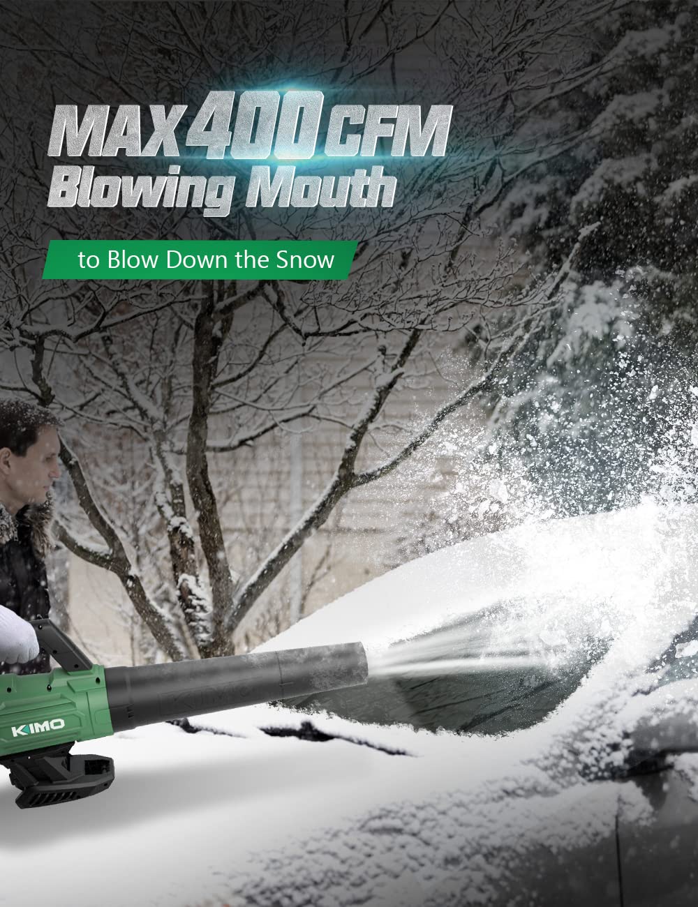 KIMO Cordless Leaf Blower - 400CFM Battery-Powered Blower for Blowing Wet Leaves, Snow Debris and Dust, 20V Electric Leaf Blower with Battery & Charger for Lawn Care Garden Yard Work Around The House