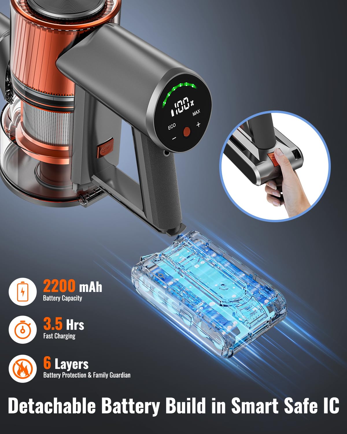 Kohe Cordless Vacuum Cleaner, 200W23Kpa 6In1 Versatile Lightweight Powerful Stick Vacuum With Led Display, Up To 45 Mins Detachable Battery, Vacuum Cleaner For Home Hard Floor Carpet Pet Hair