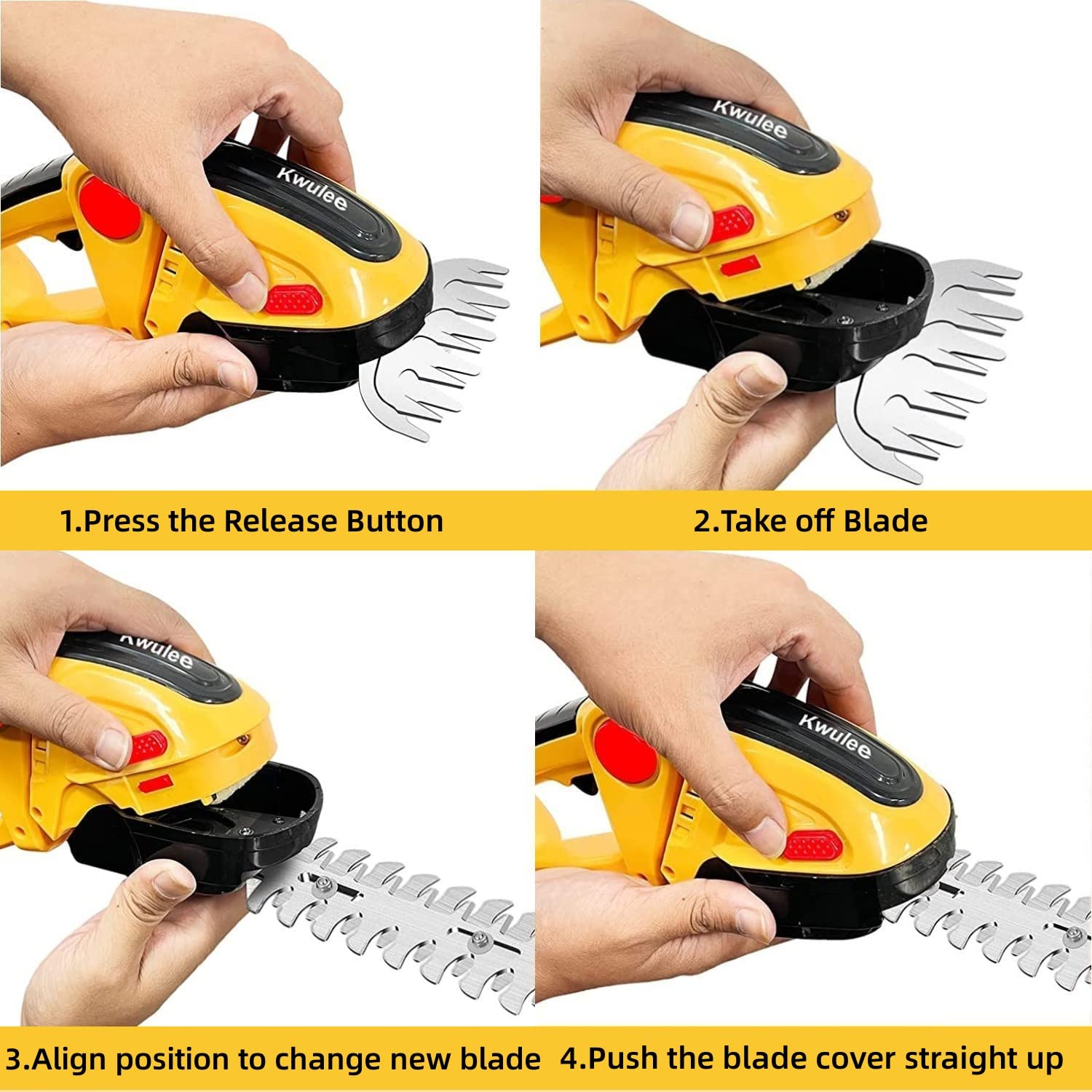 • 【SK5 Blade】The blade is made of SK5 stainless steel, the length of the lawn mower is 12 inches, the width of the hedge trimmer is 5 inches, it is extremely sharp, the structure is stable, and the service life is long.Get double the power of conventional lawn mowers and hedge trimmers with these two blades, and it can trim grass, branches and shrubs efficiently,quickly and smoothly.the electric hedge trimmer is easy to operate with one hand, no tools are required, and the blade is easy to change.
