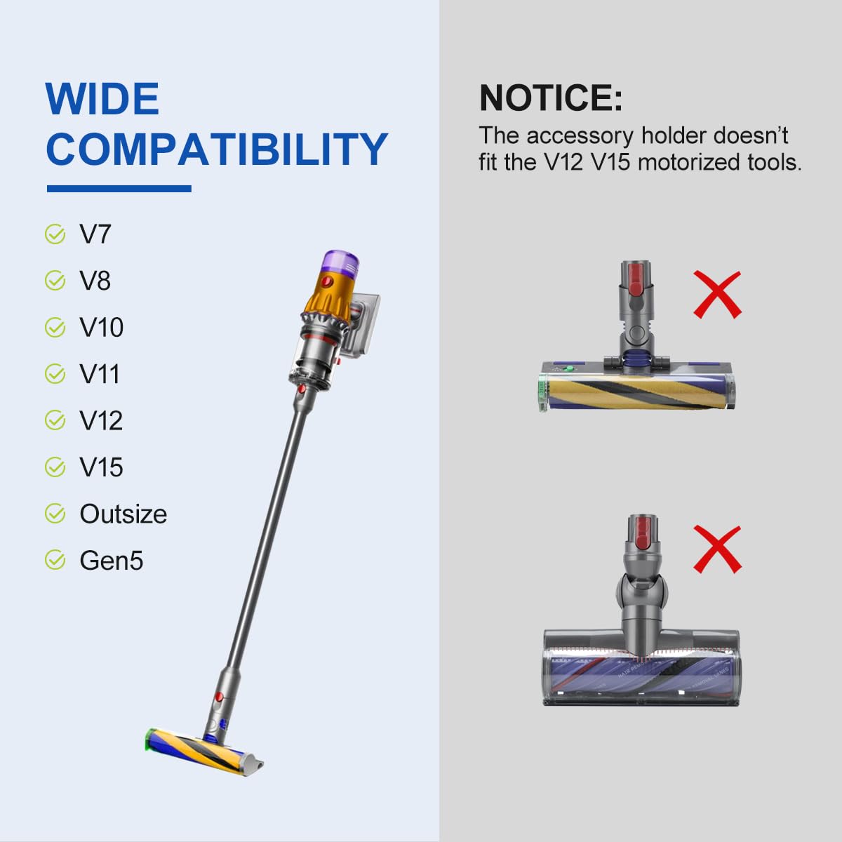 Lanmu 4 Pack Wall Mount Accessory Holder Compatible With Dyson V15 V12 V11 V10 V8 V7 Outsize Gen5 Vacuum Cleaner, Attachments Organizer, Not Fit V12 V15 Motorized Tools