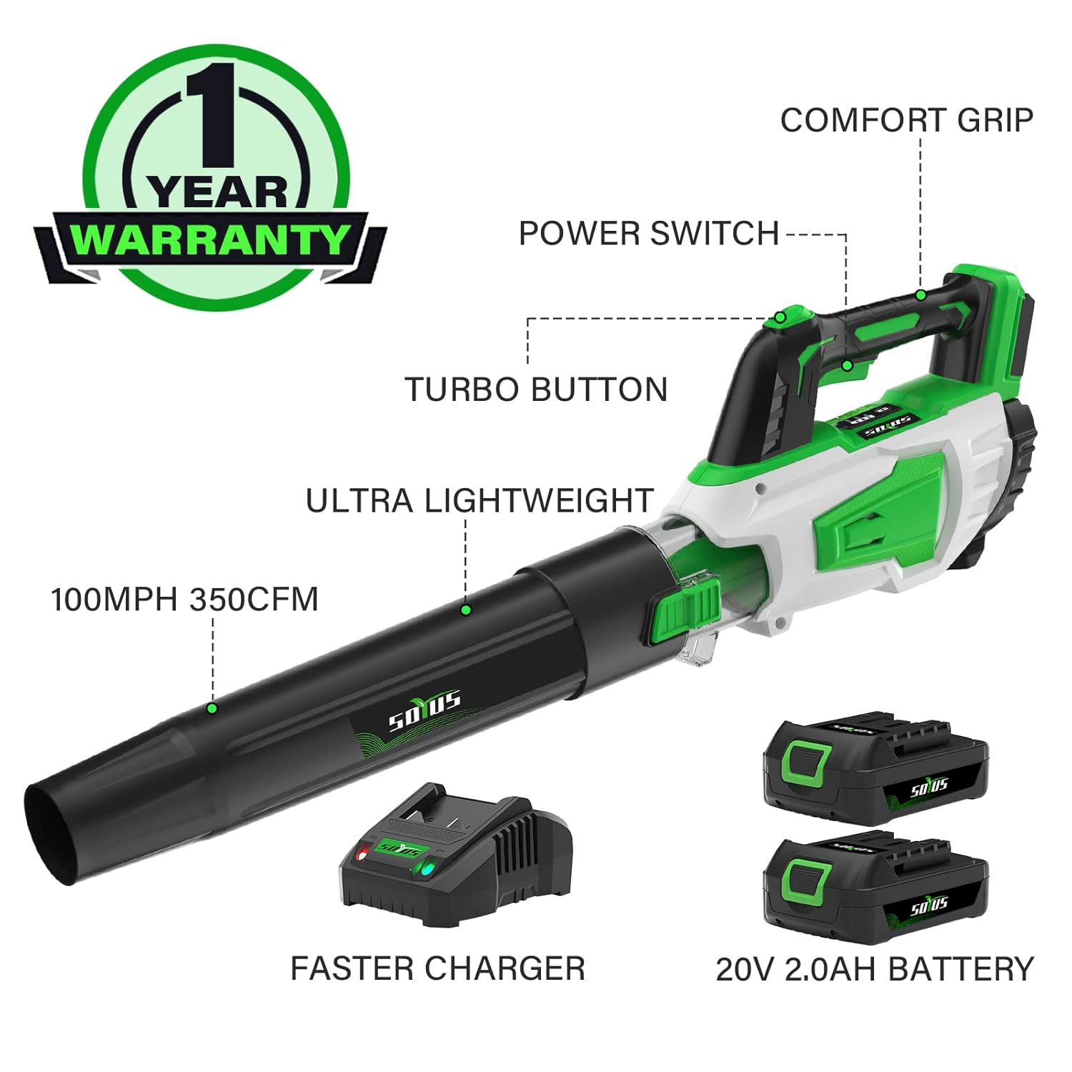 Leaf Blower Cordless Battery and Charger SOYUS 20V Blowers for Lawn Care 350CFM Leaf Blower Battery Operated for Leaf Blowing Debris Dust Cleaning Snow Blower 2PCS 2.0Ah Batteries Included