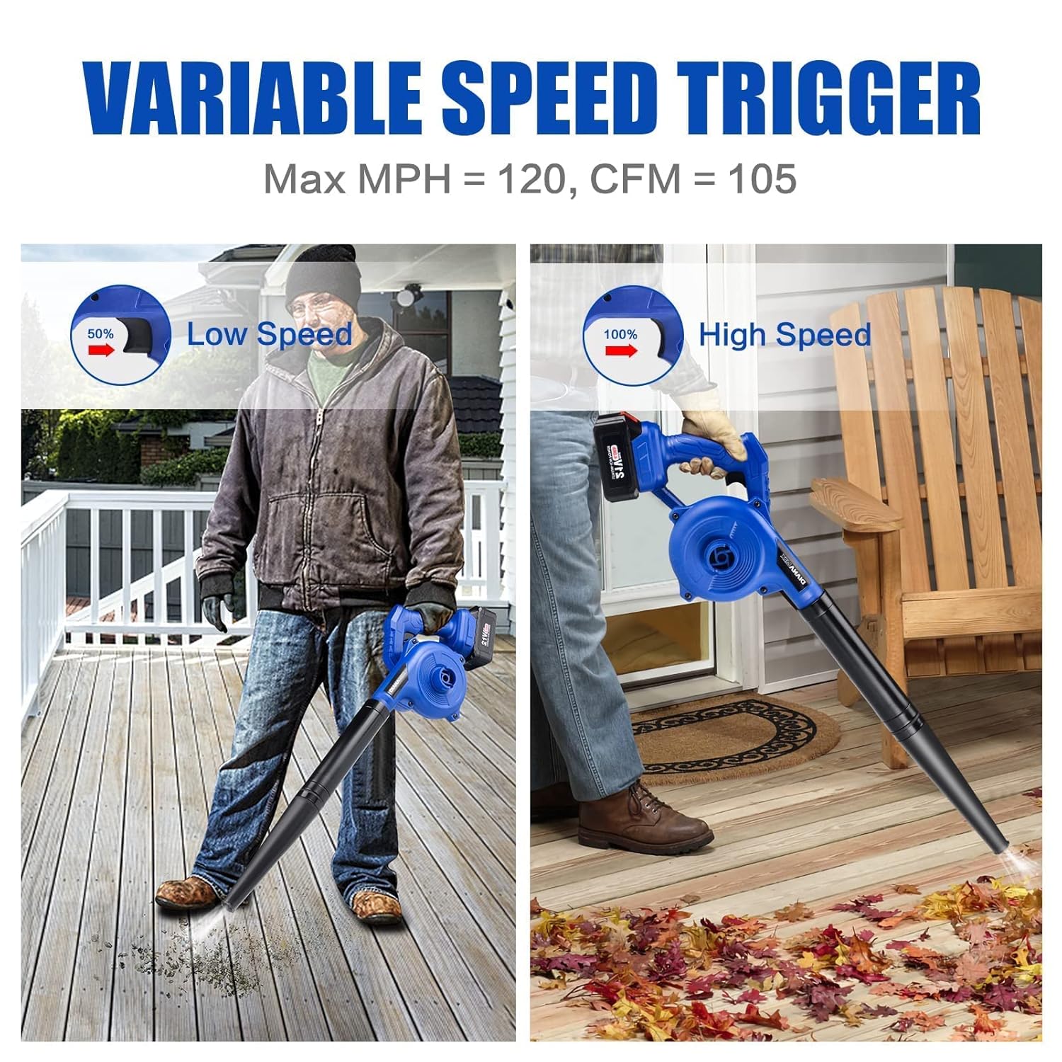 • 【Super Strong Wind & Upgraded Tube Length】Turbofans &all-copper motors provide up to 24,000 r/min strong power, produces a maximum air speed of 130 MPH and a maximum air flow of 130 CFM. Big capacity battery keeps running at top speed for 20 minutes. It's easy to blow up wet leaves, snow on your car, and make your garden keep clean after a rainy day. An upgraded double-length tube, which is more convenient for blowing without bending down, brings you a better cleaning experience.