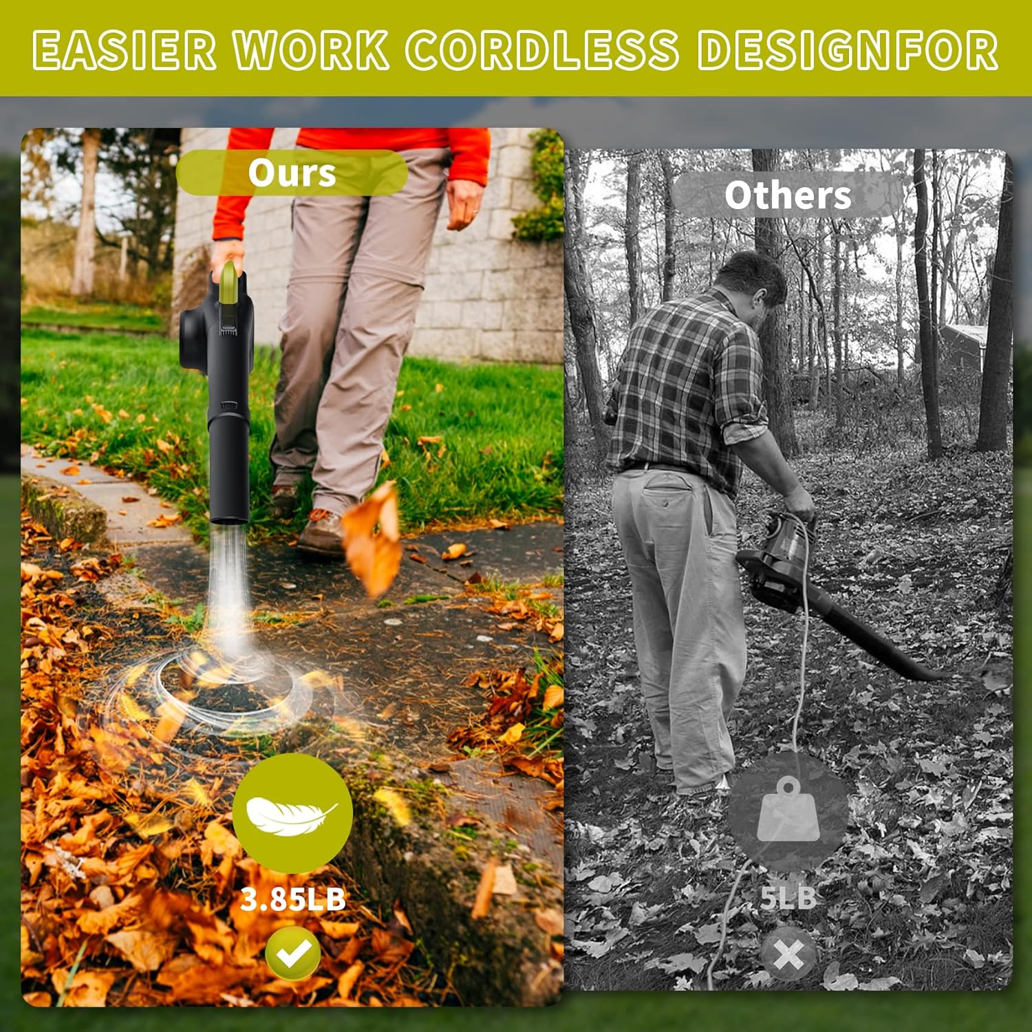 Leaf Blower Cordless with Battery & Charger, DOROBEEN 160MPH Cordless Leaf Blower, 24V 3.0Ah Battery Powered Blower with LED Light, Stepless Speed Electric Lawn Mower Cordless, Blowers for Lawn Care