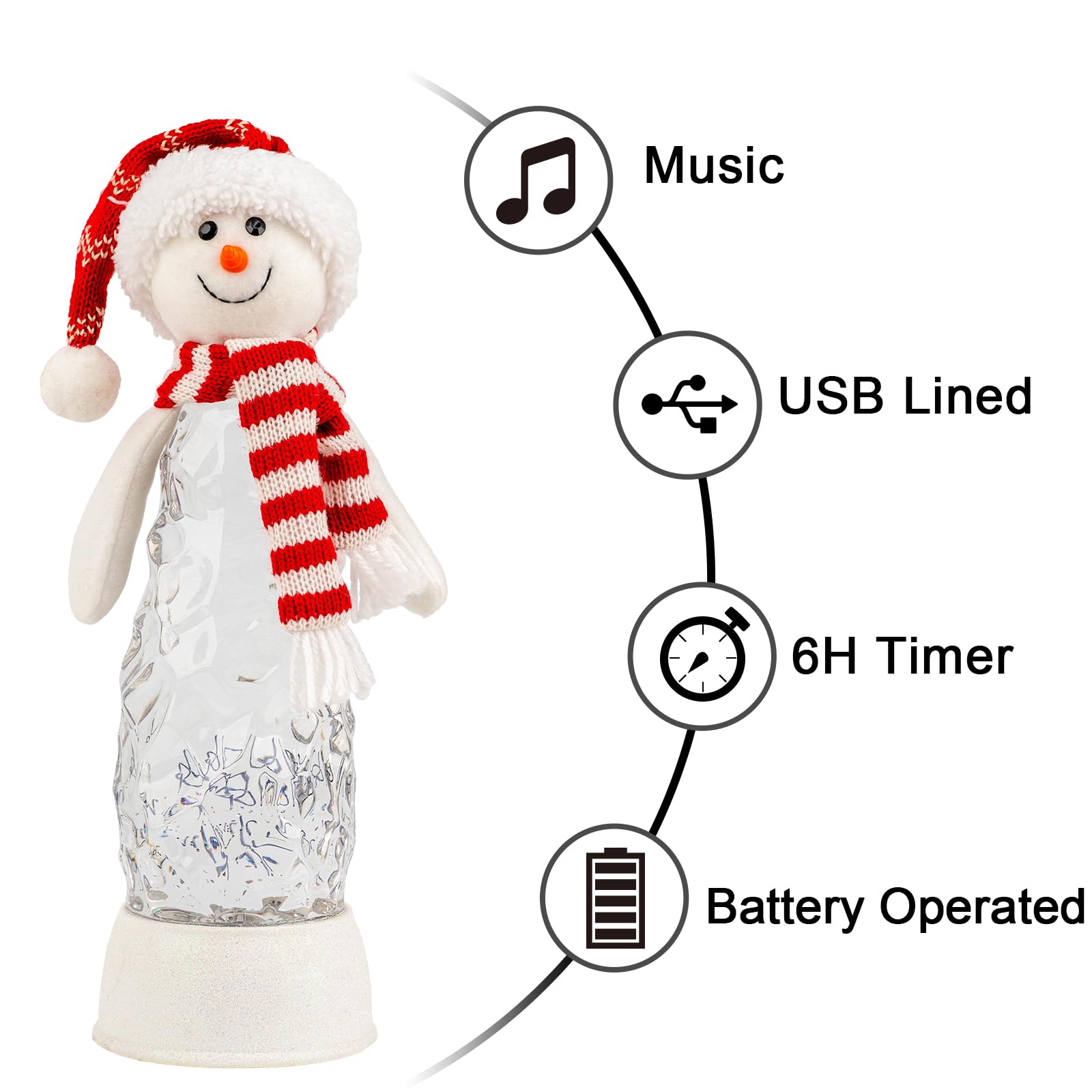 LED Lighted Snowman Swirling Glitter Musical Water Lantern Christmas Snow Globe Home Decoration and , Battery Operated or USB Powered