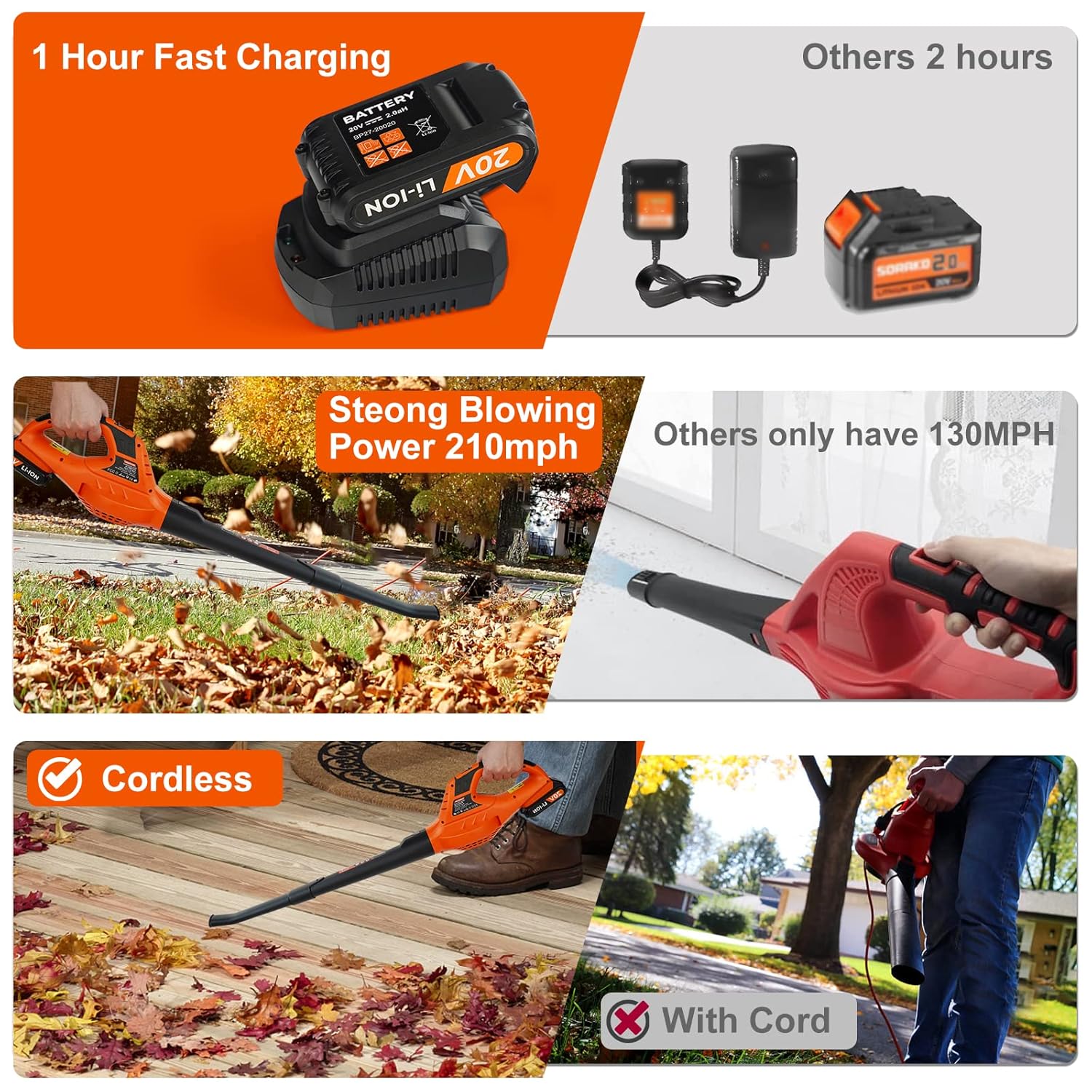 Leisch Life Cordless Leaf Blower with 2.0Ah Battery & Fast Charger+Cordless Leaf Blower Straps