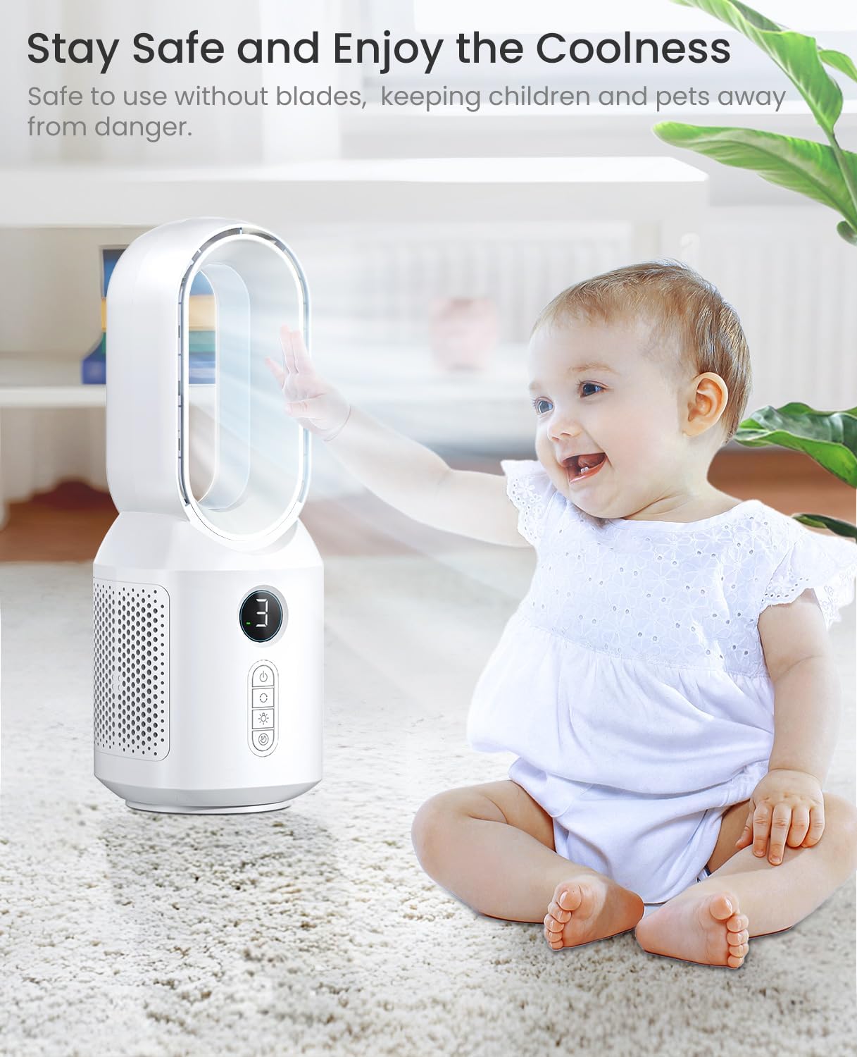 Let'Me Desk Fan, 106° Oscillating Fan For Indoors,Bladeless Fan With 3 Speeds, Small Office Fan With Led Light, 13 Inch Personal
