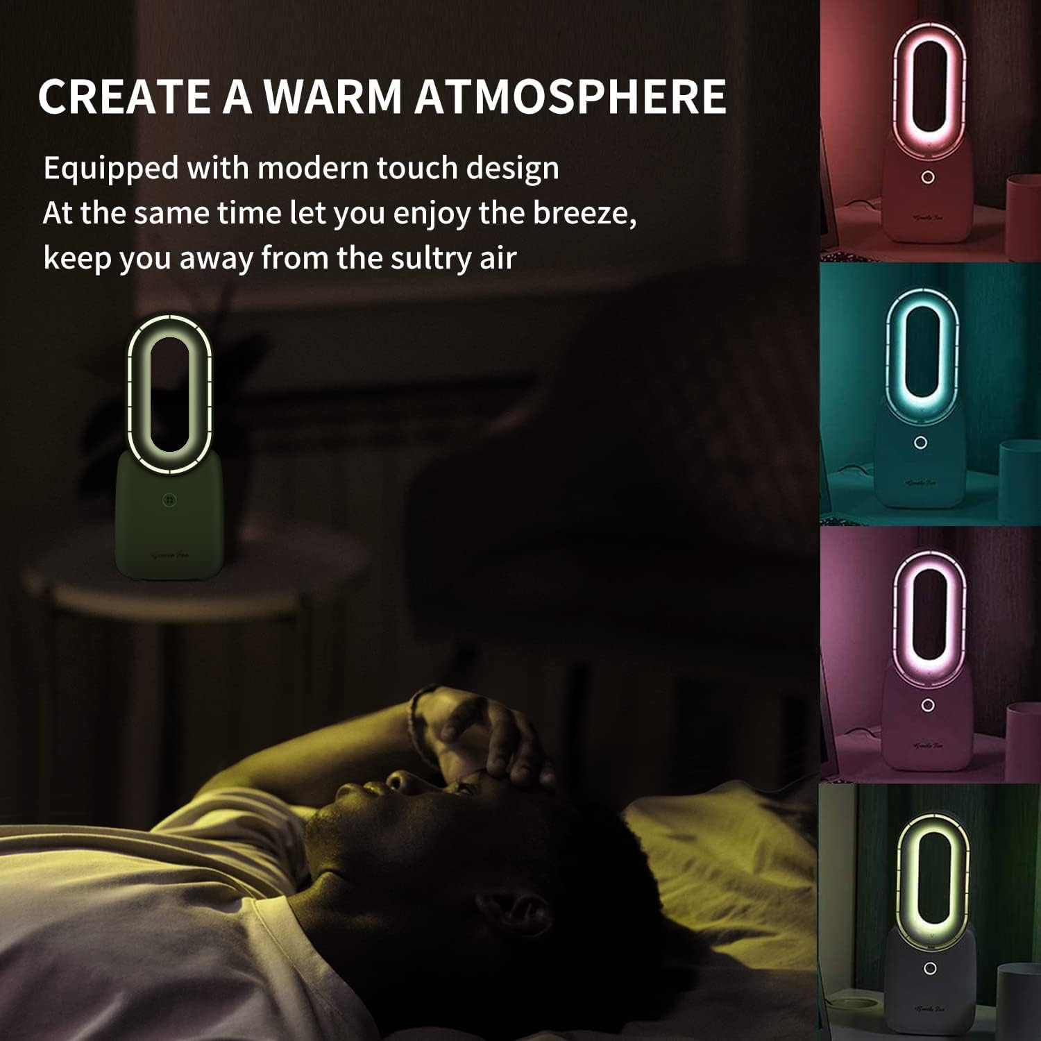 Let'Me Desk Fan, 11.8 Inch Portable Bladeless Fan Small Personal Cooling Fan With 5 Colors Touch Control Led Light, Quiet Usb