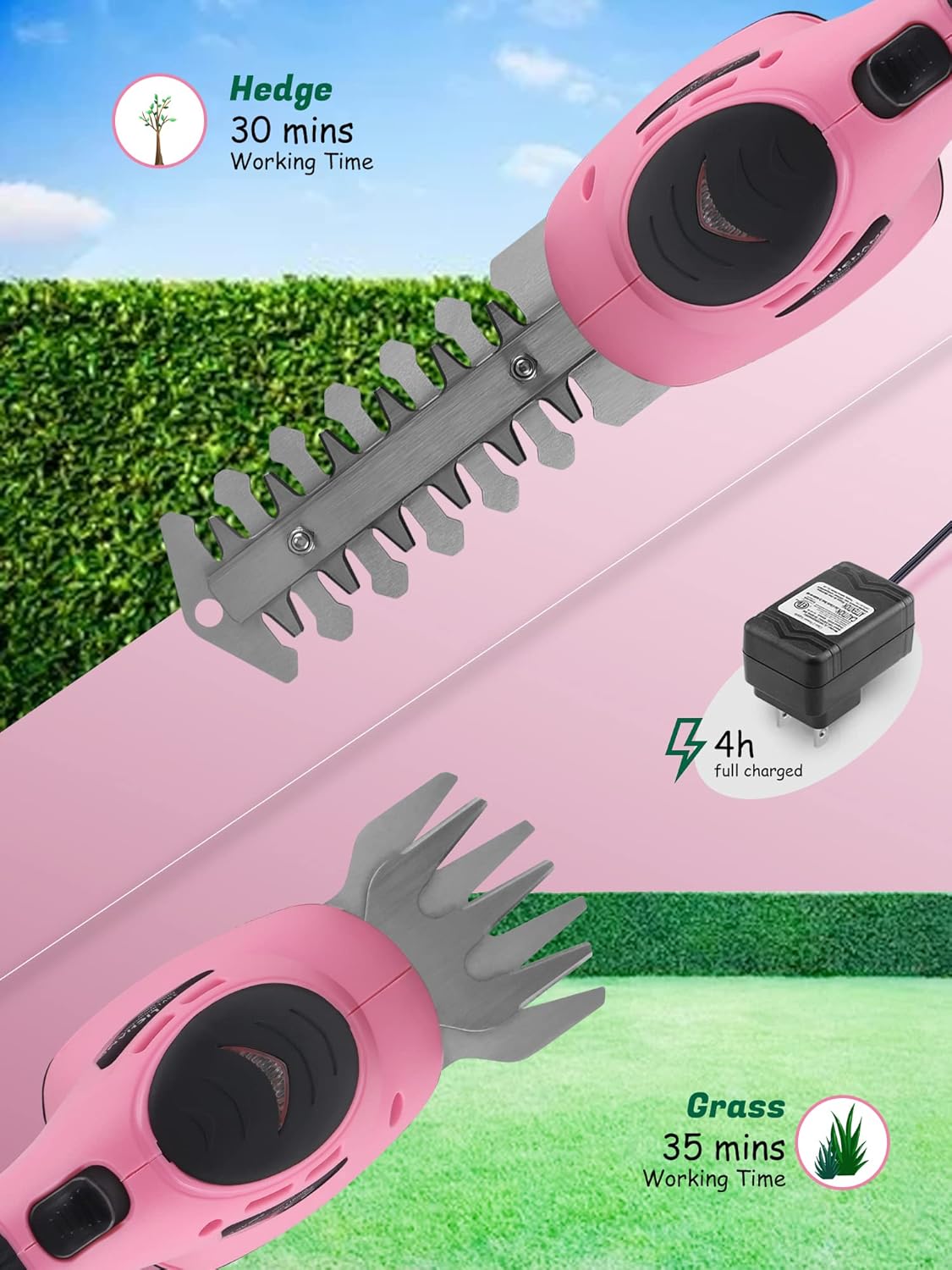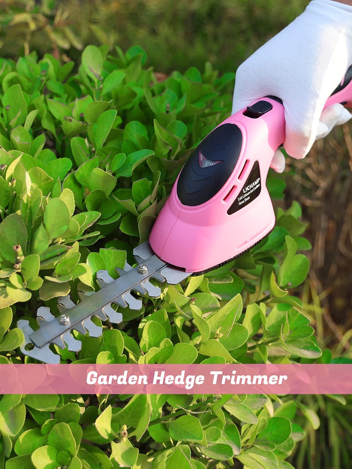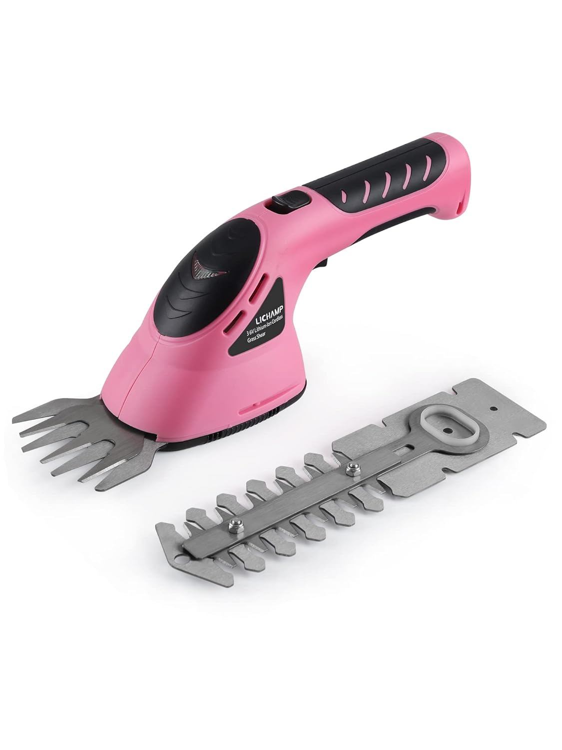 Lichamp 2-in-1 Electric Hand Held Grass Shear Pink Hedge Trimmer Shrubbery Clipper Cordless Battery Powered Rechargeable for Garden and Lawn, CGS3602PK Pink