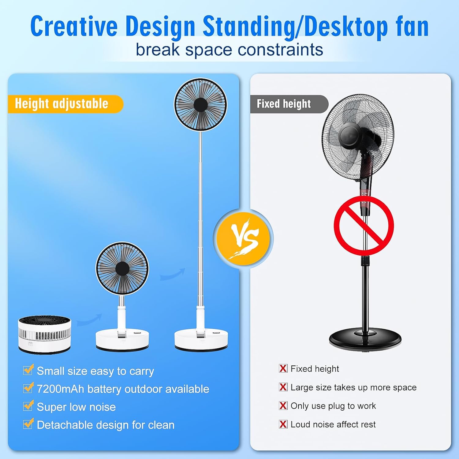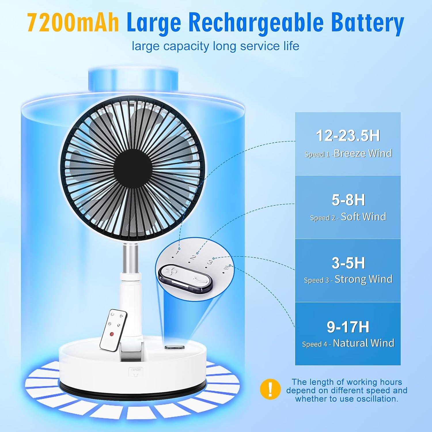 Lipety Foldable Oscillating Standing Fan With Remote, 8 Portable Table Quiet Fan, 7200Mah Rechargeable Usb C Folded Floor Fan