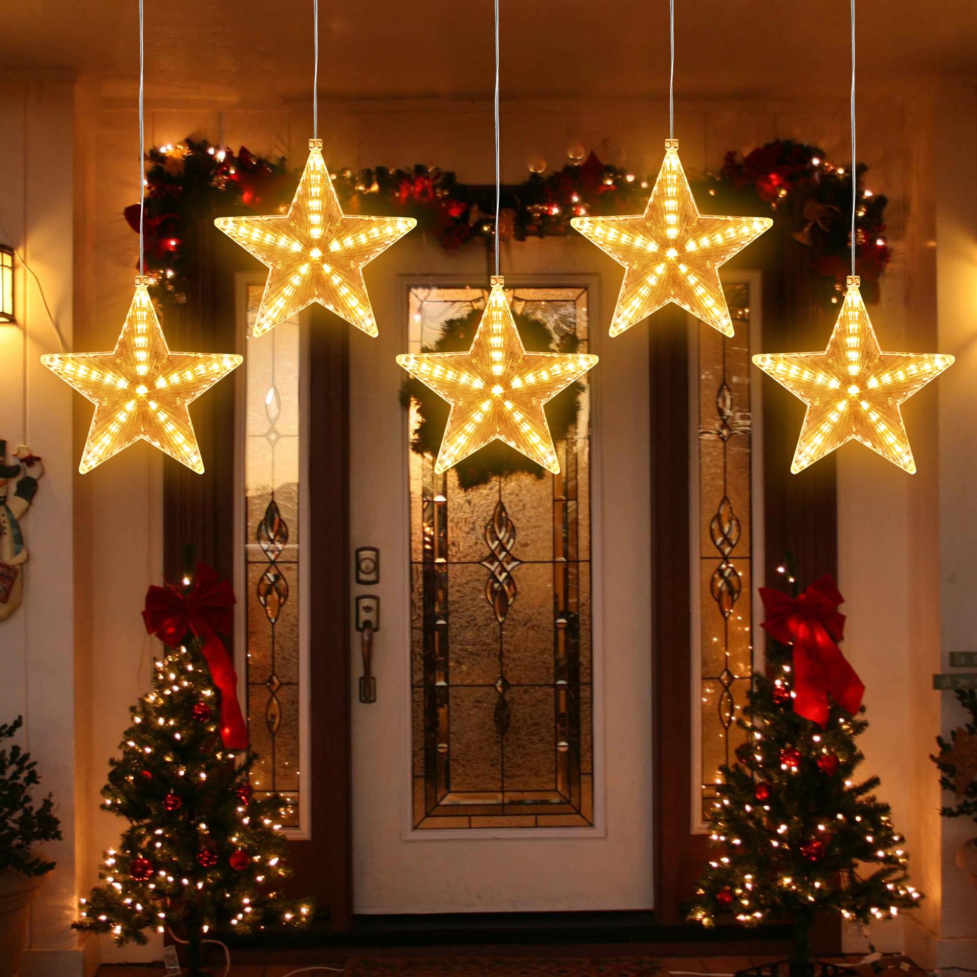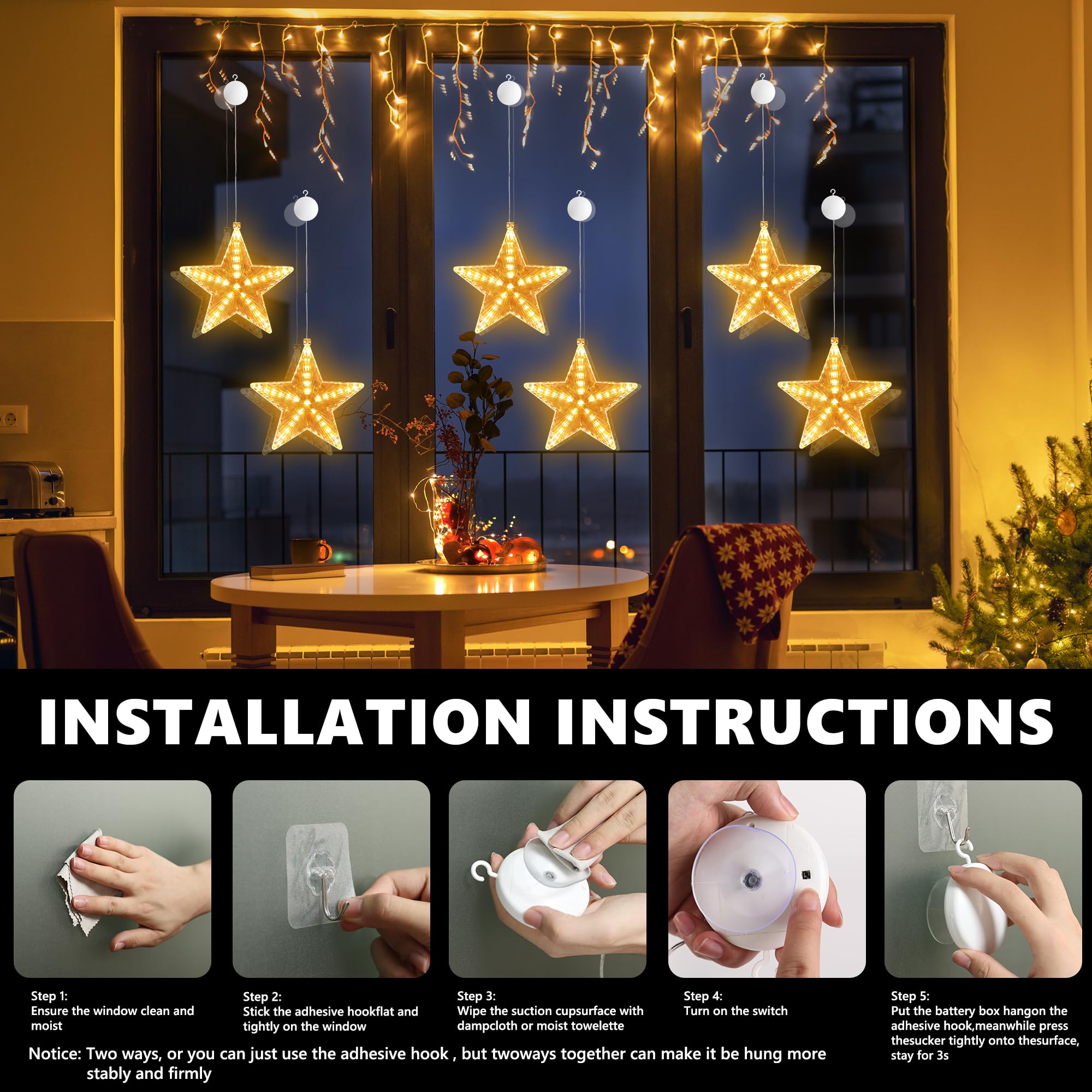 Lomotech Meteor Shower Star Window Lights with Suction Cup, Battery Operated 7.8 Inch Warm White Star Lights with Timer Function for Christmas Decorations (2 Pack)