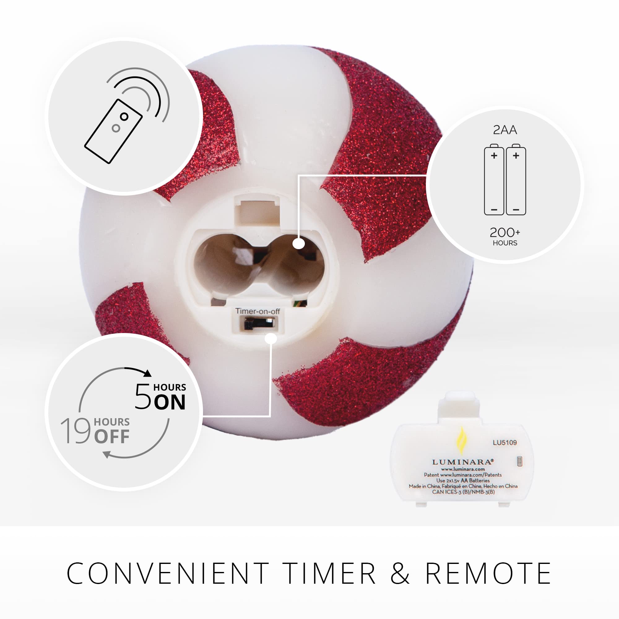 Luminara Flameless Candle Crystal Beads Glitter Sphere, Unscented Real Wax LED Candle, Timer, Holiday Decoration Centerpiece (Candy Cane Red)