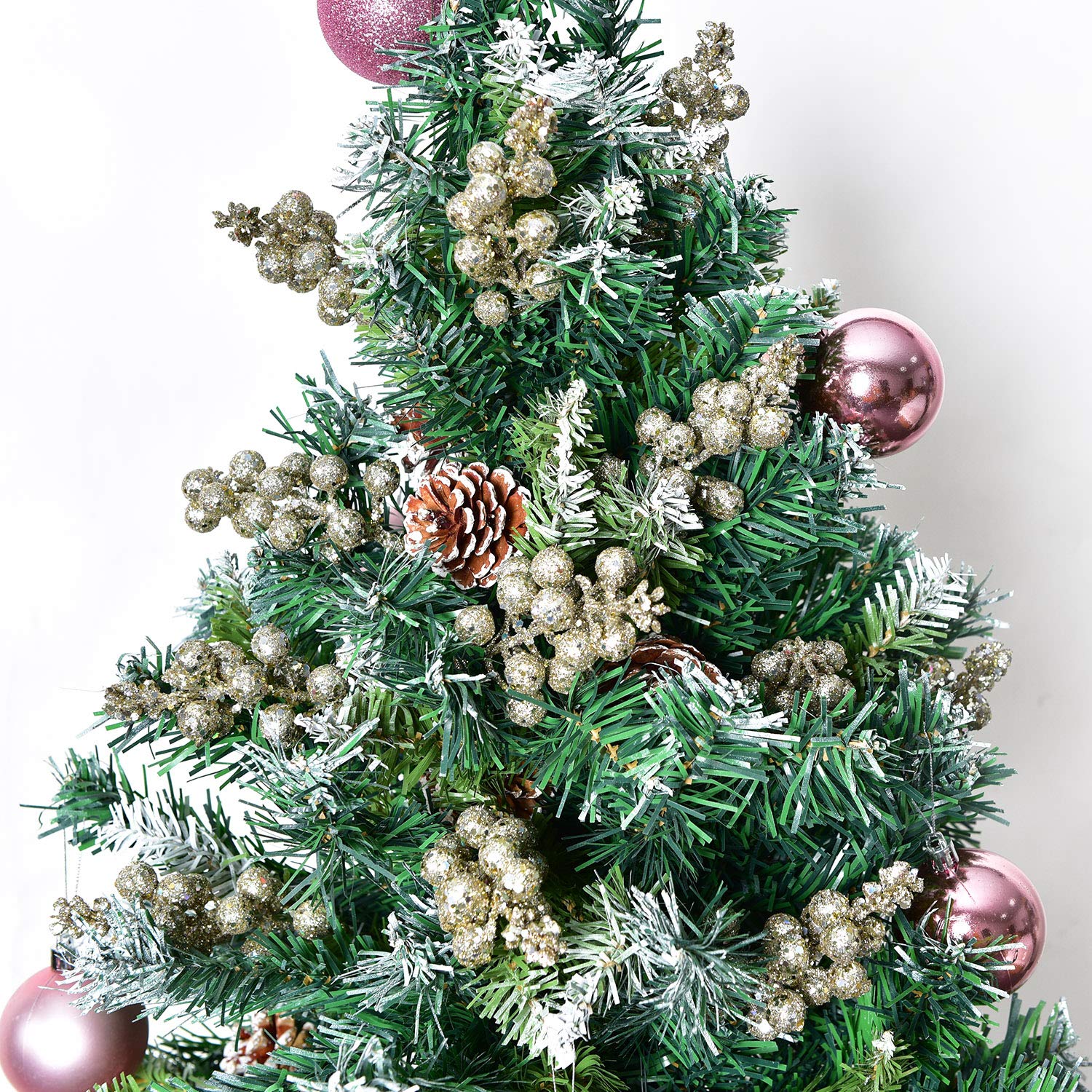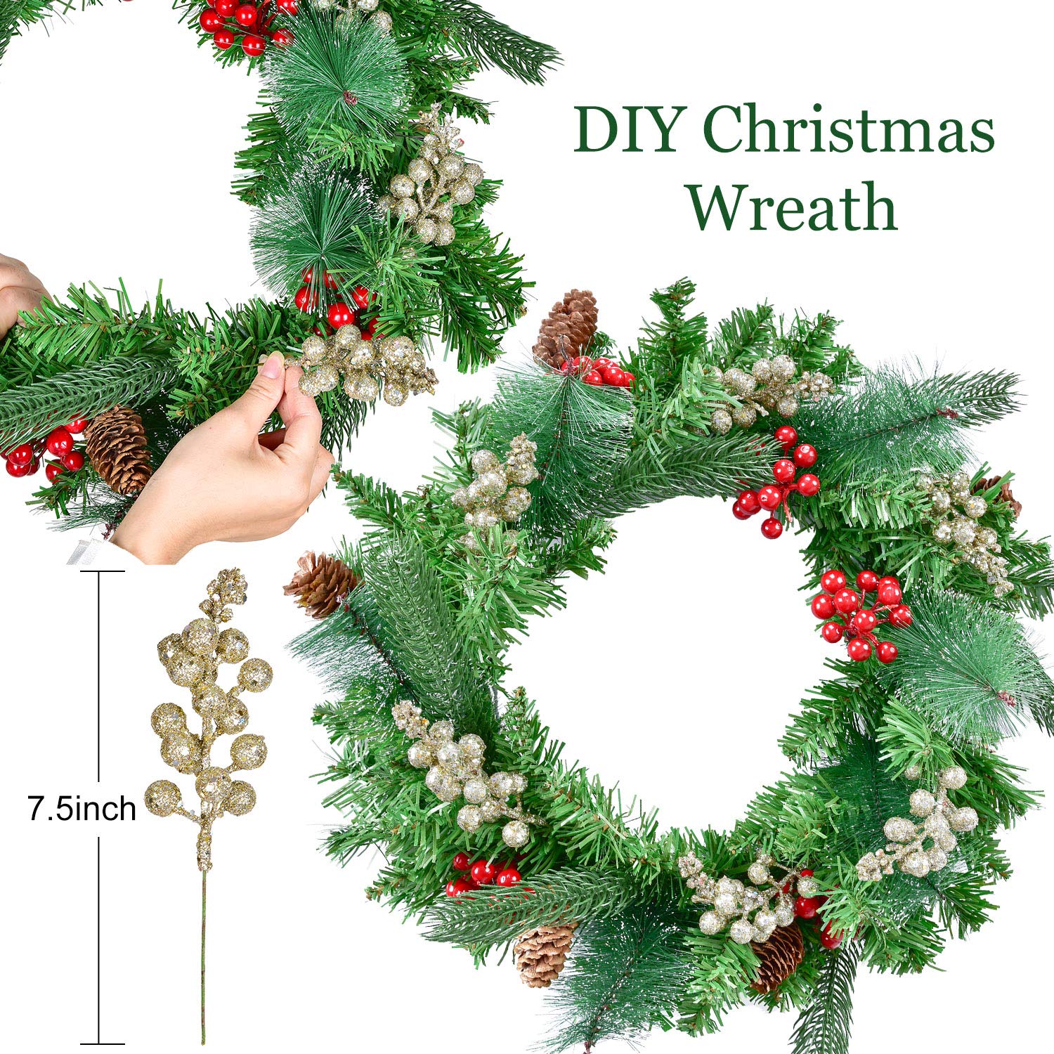 Lvydec 16pcs Christmas Glitter Berries Stems, 7.8" Artificial Christmas Picks for Christmas Tree Ornaments, DIY Xmas Wreath, Crafts, Holiday and Home Decor (Champagne)