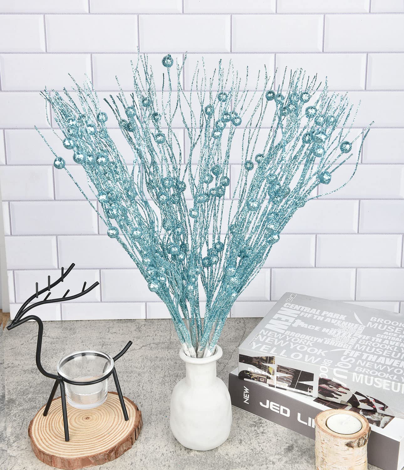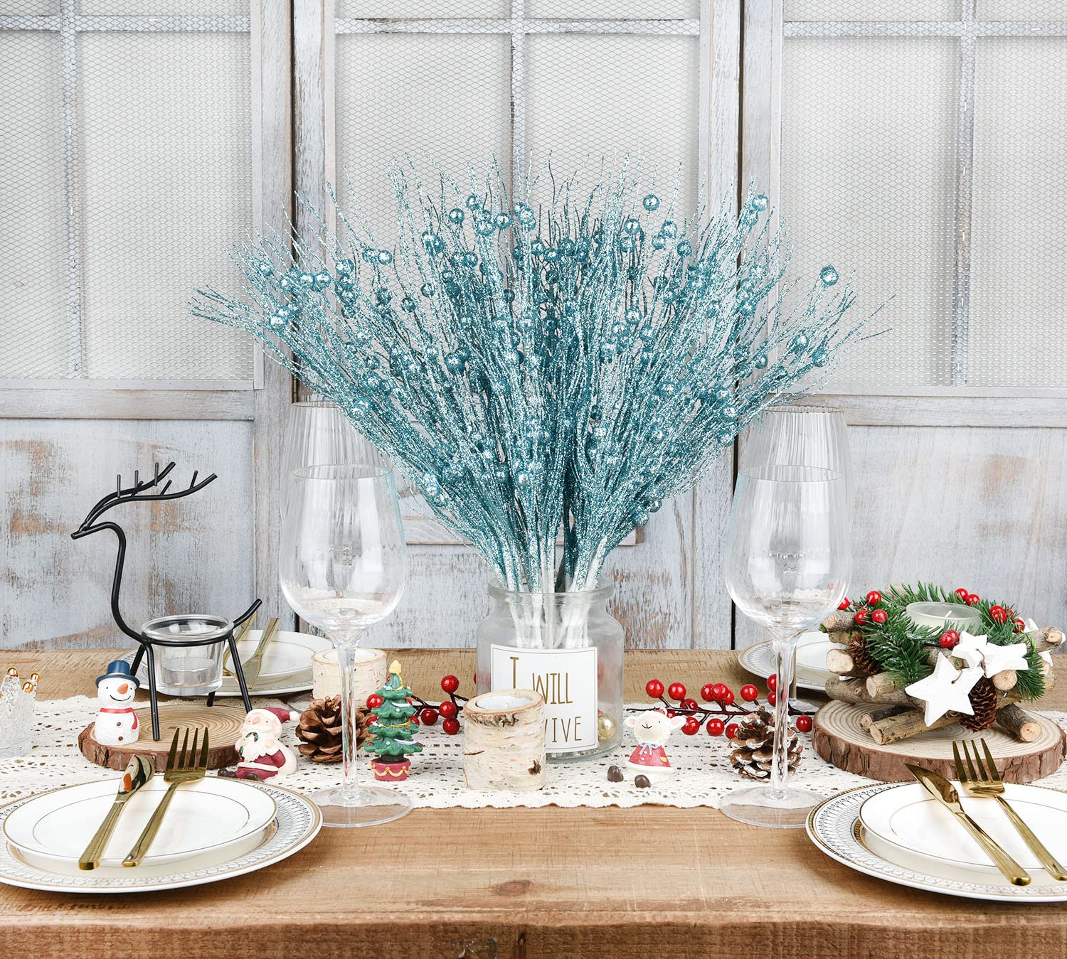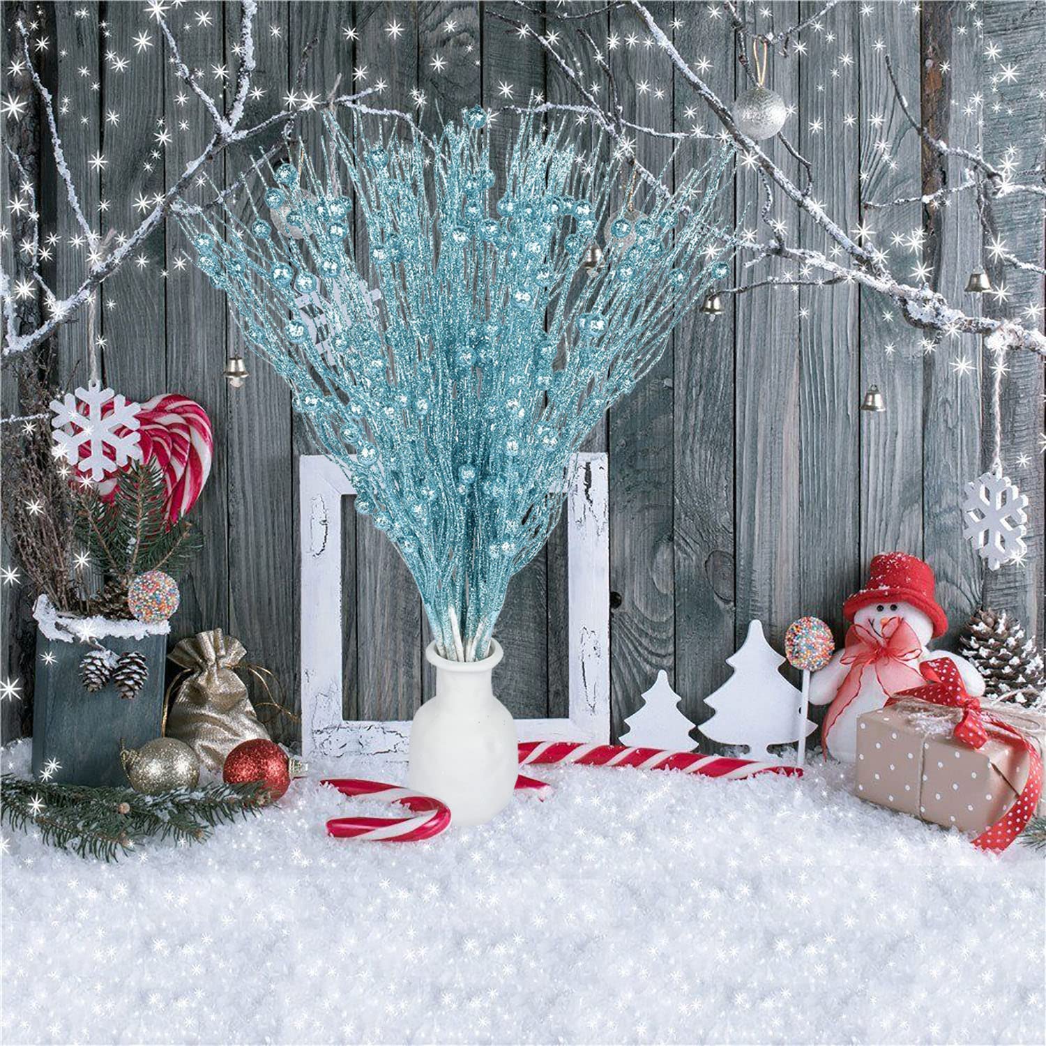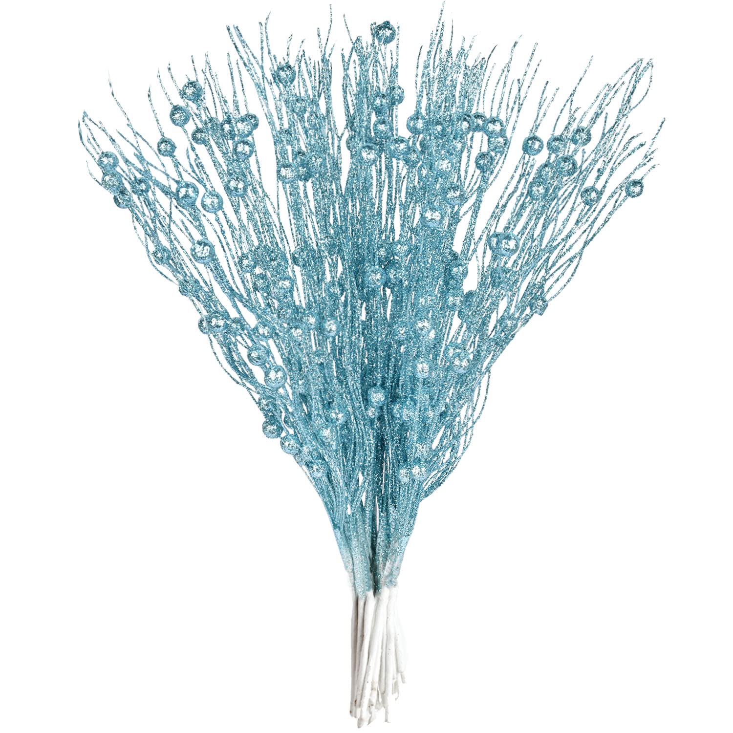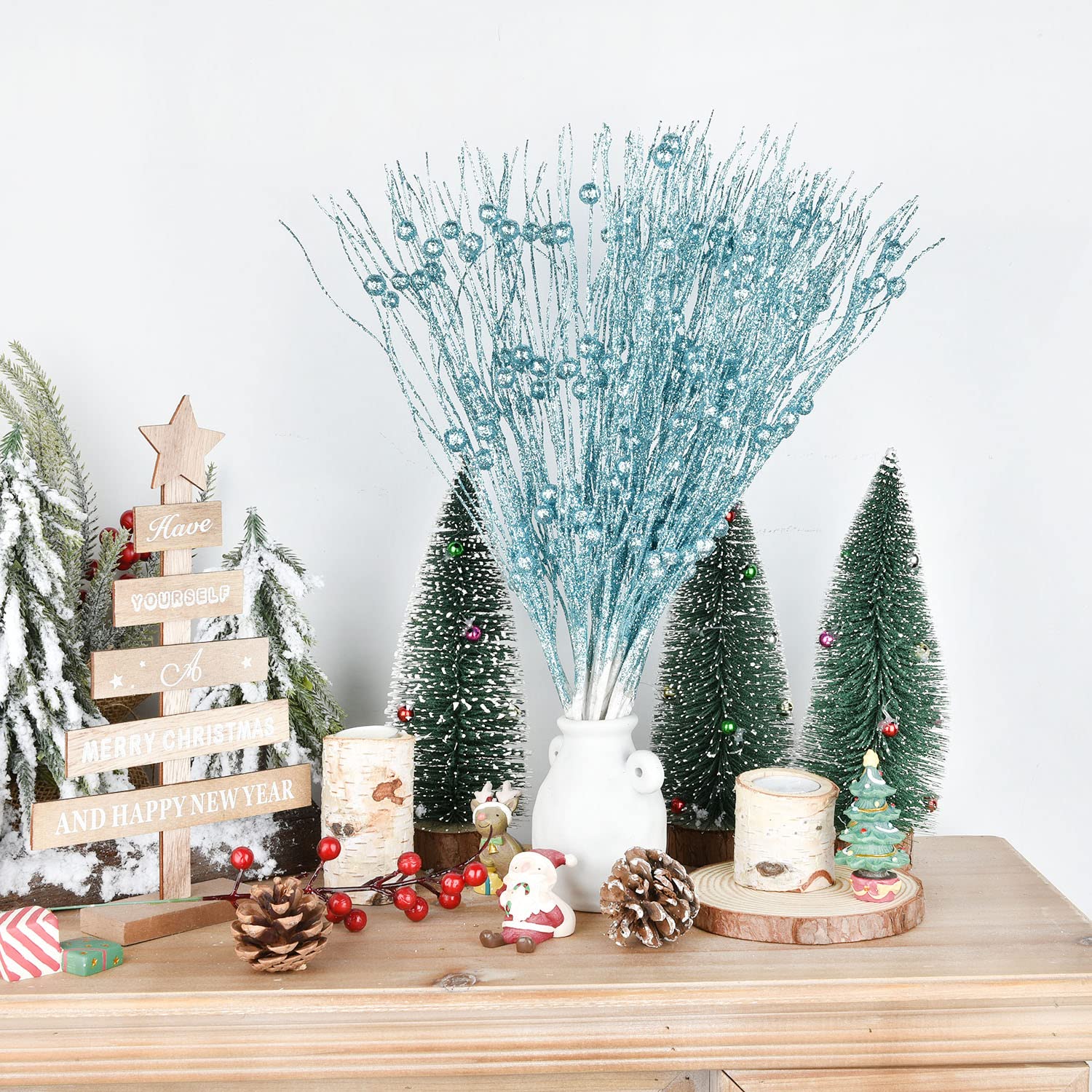 Lvydec 22pcs Christmas Glitter Berries Stems, 17" Artificial Christmas Picks for Christmas Tree Ornaments, DIY Xmas Wreath, Crafts, Holiday and Home Decor (Blue)