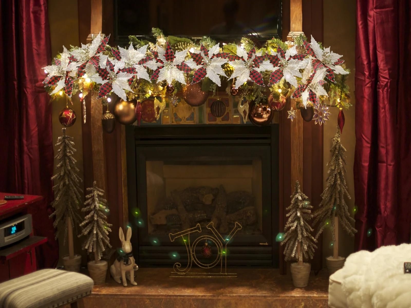 M2cbridge Large Christmas Poinsettia Glitter Foldable Christmas Flowers Floral Picks Stems for Christmas Tree Decorations Wedding Centerpiece (4pcs Buffalo Plaid)