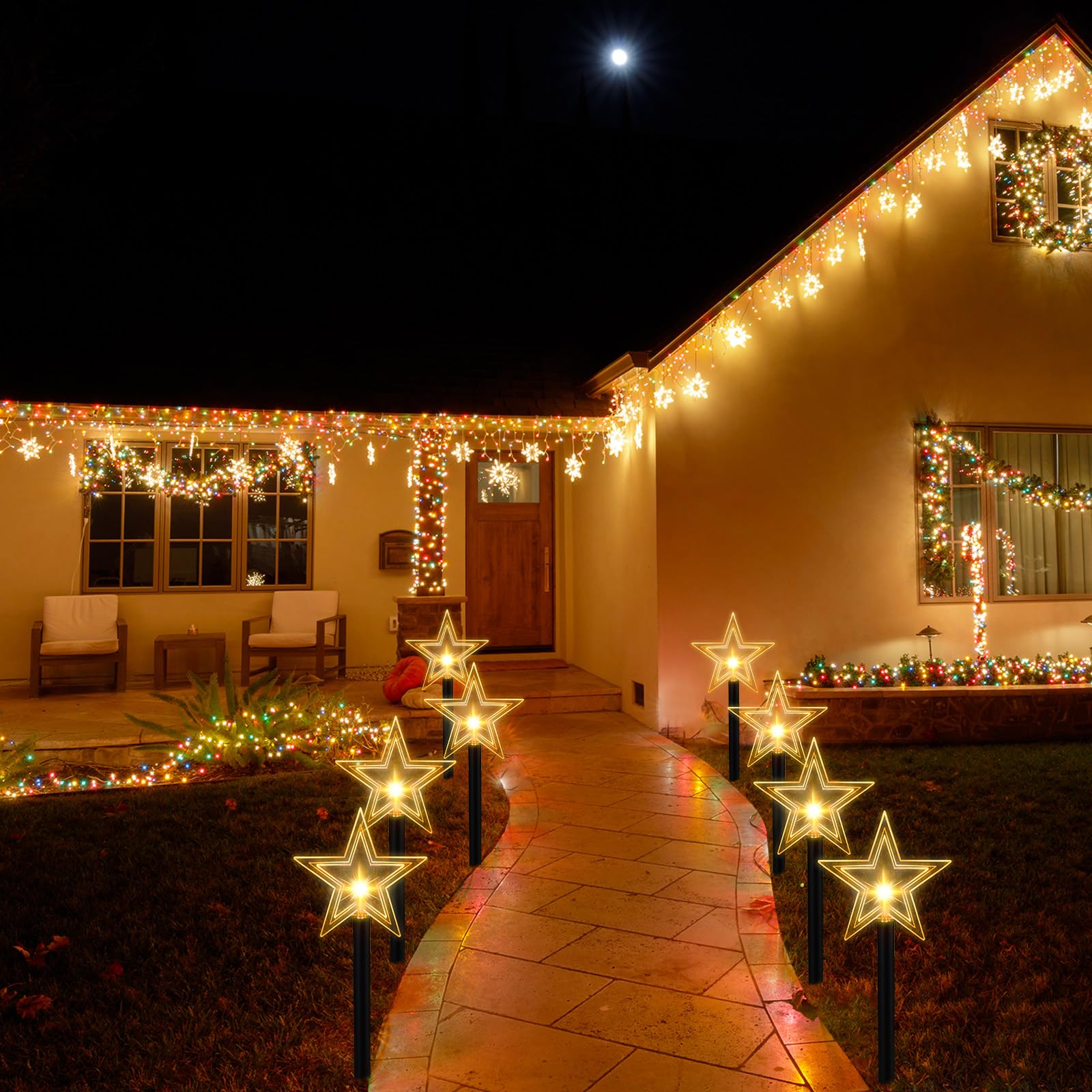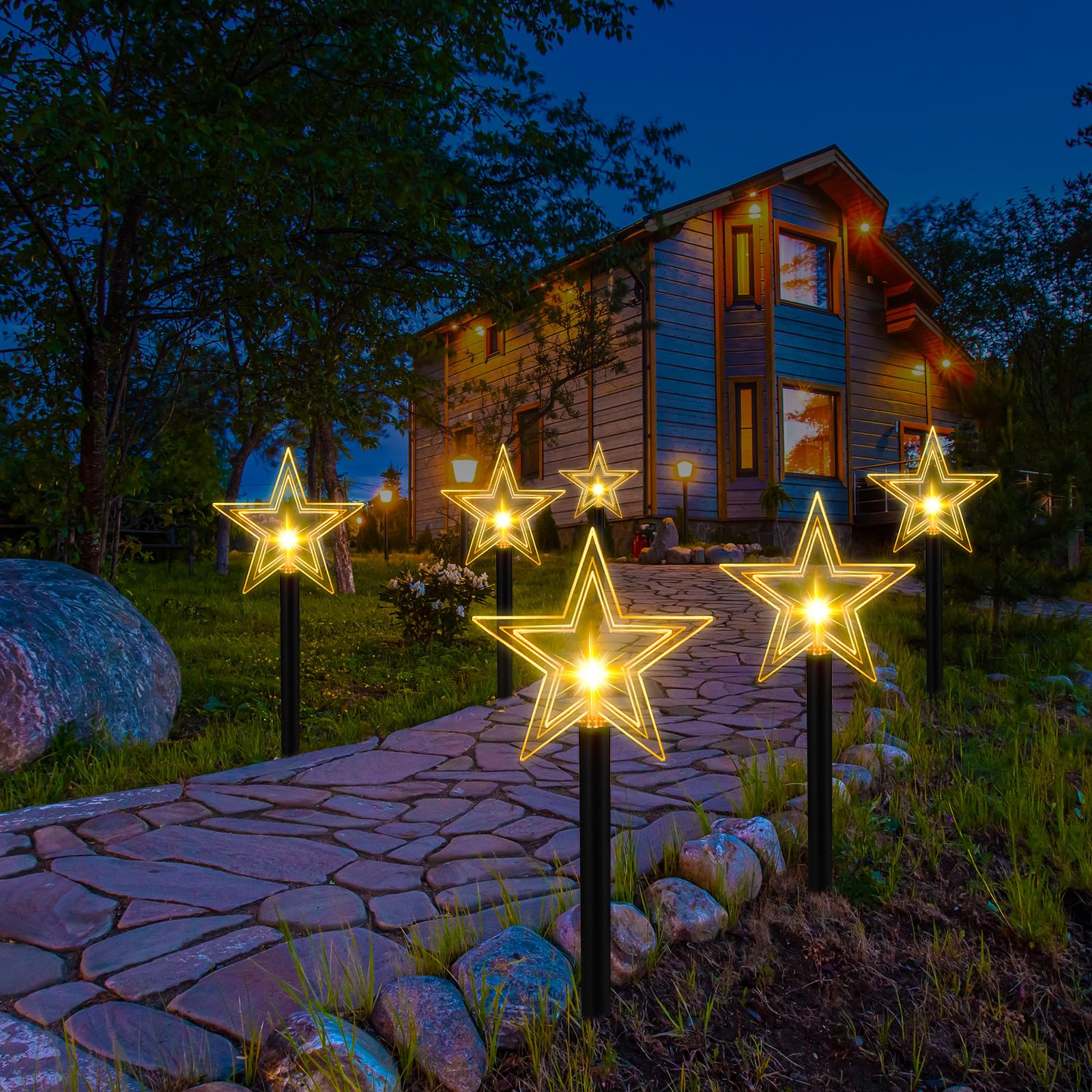 Macarrie 20 Pcs Solar Christmas Lights Outdoor Star Shape LED Lights Stake Lights Signs Garden Pathway Lights for Home Garden Patio Yard Lawn Decor Christmas Decorations